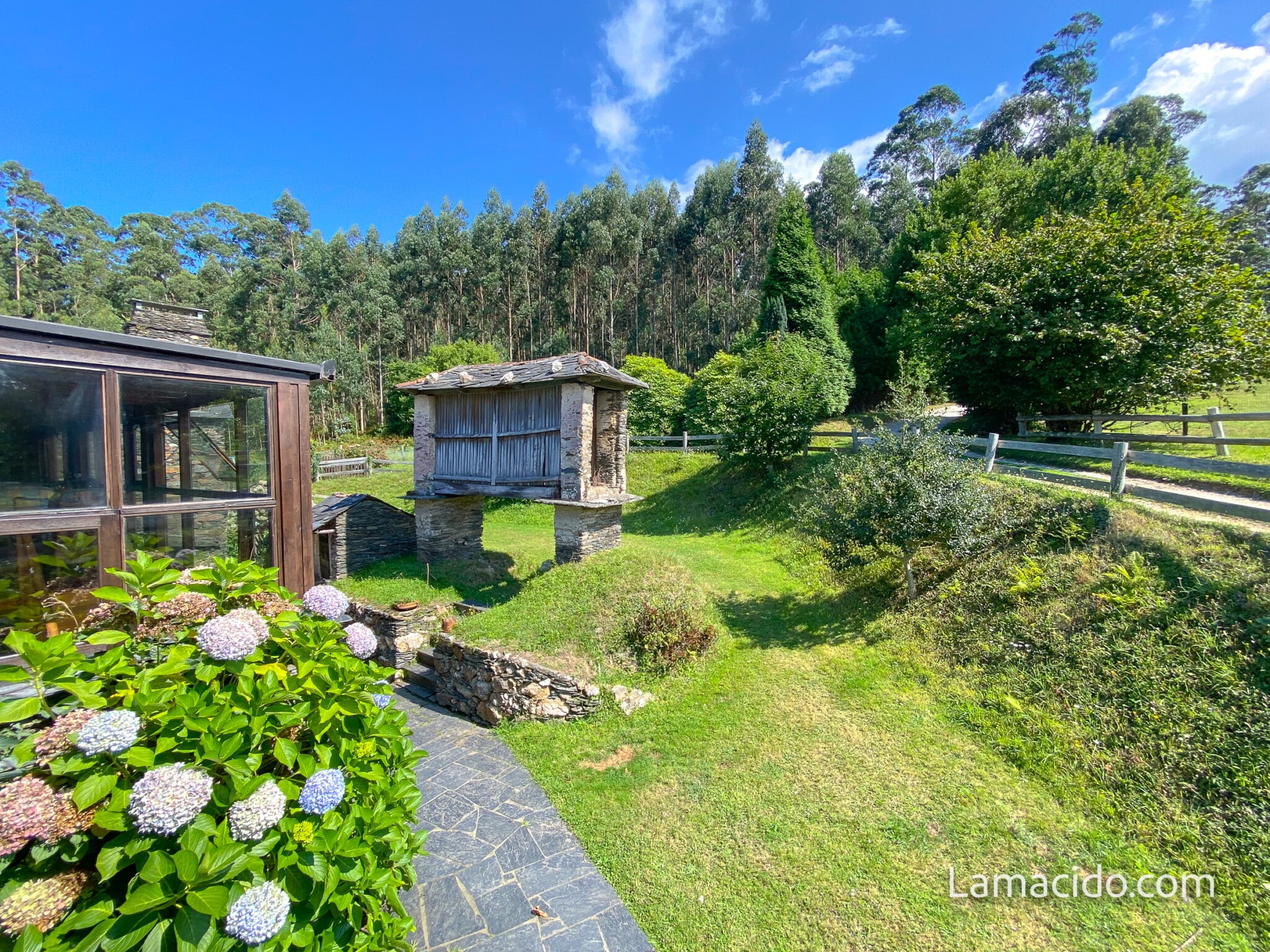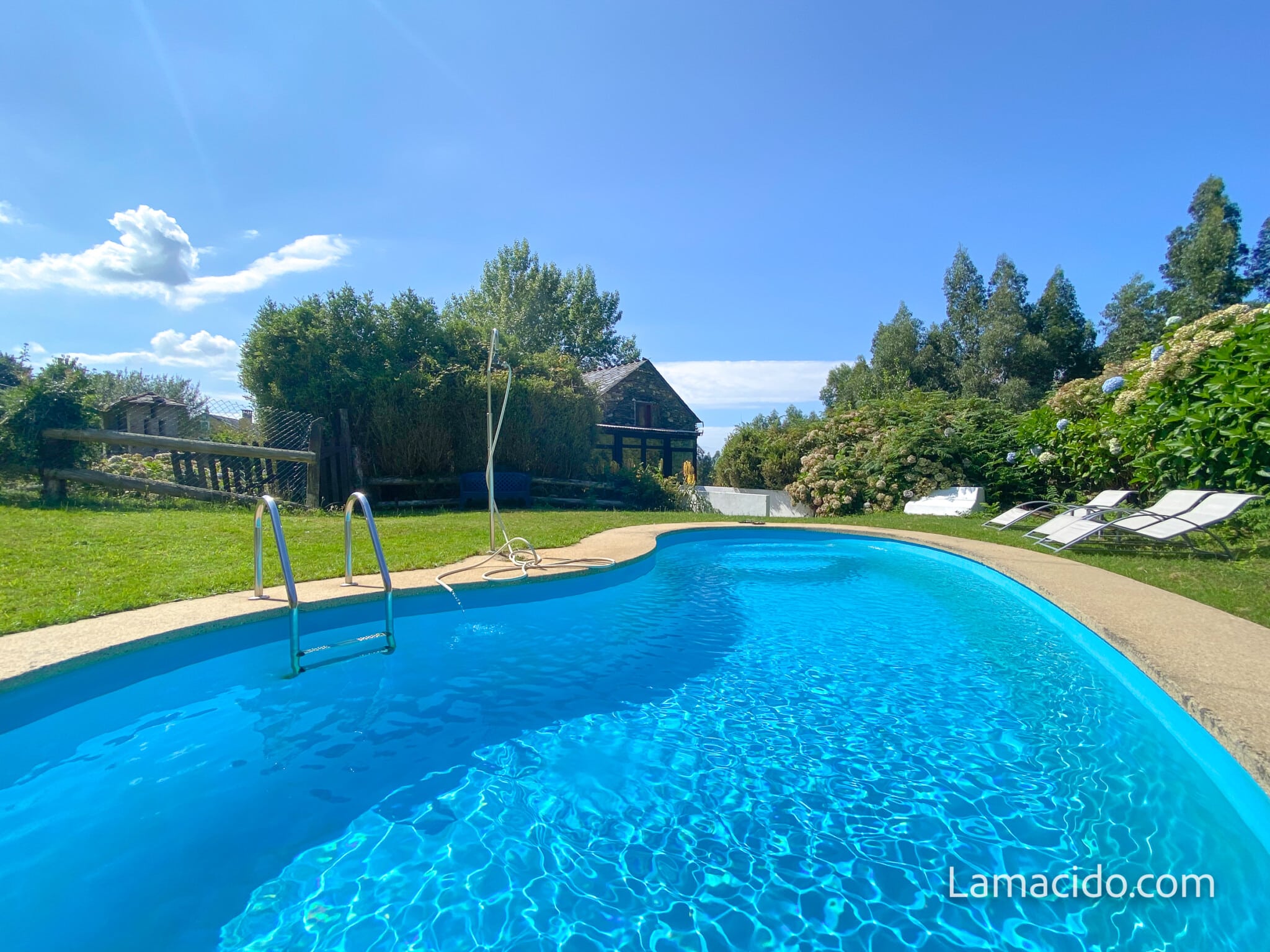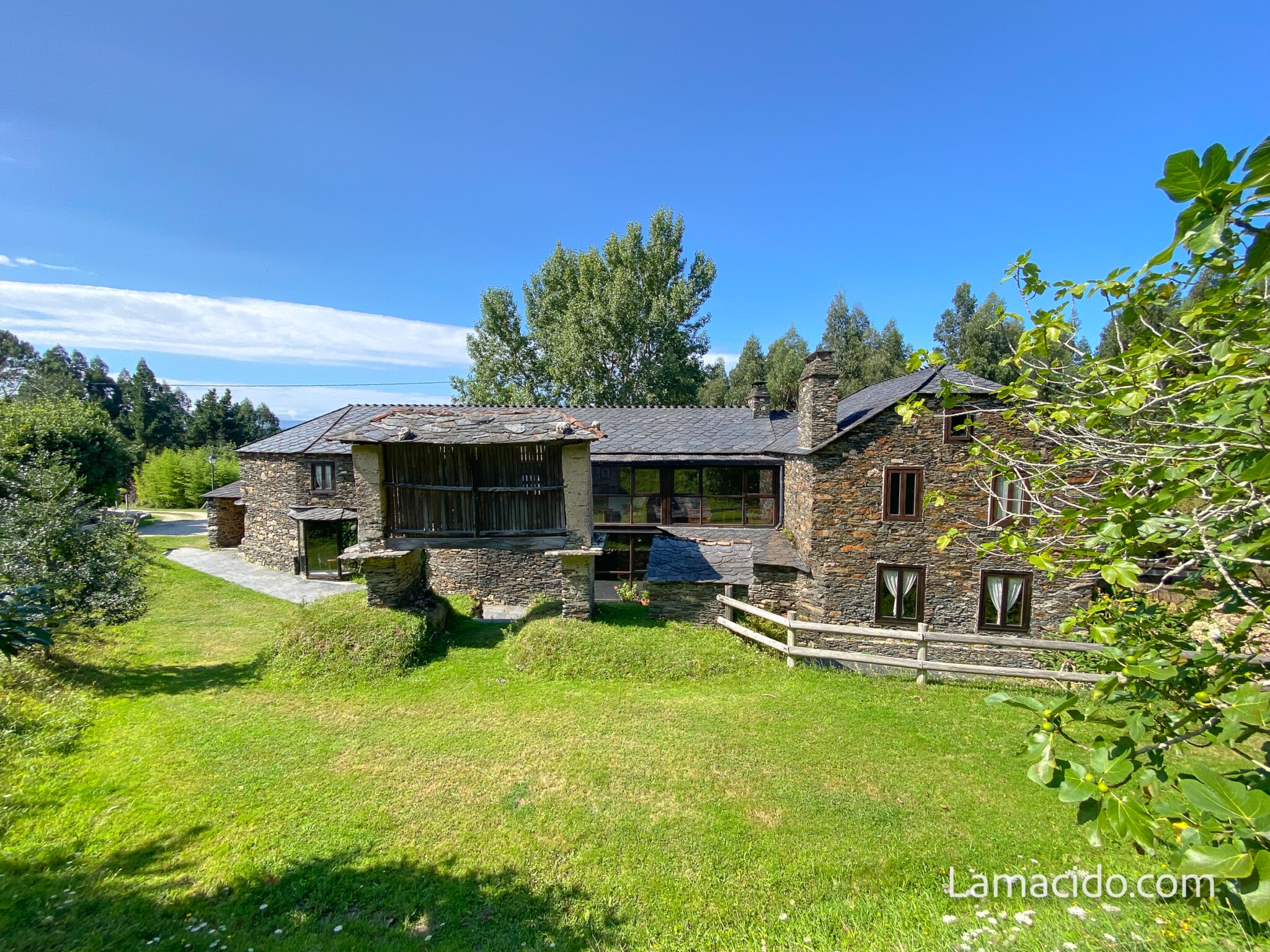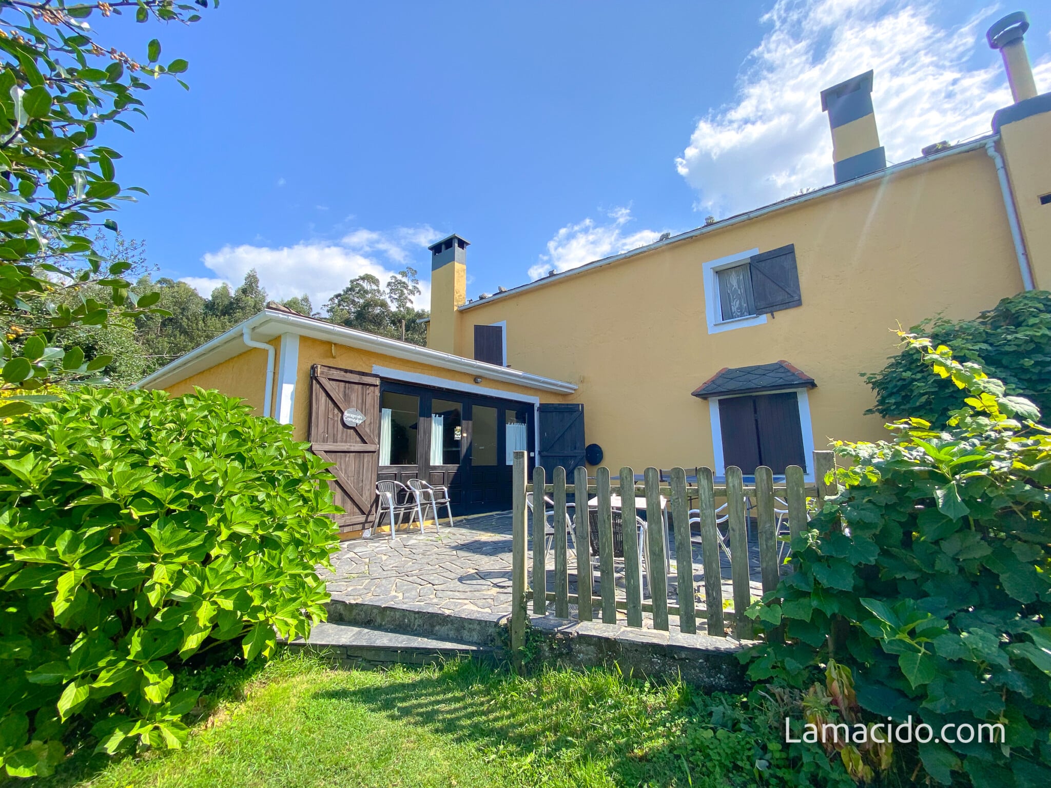 En «Aldea Lamacido» de»Turismo Rural», se ofrecen dos modalidades de alojamiento. La «Casa Granja» de alquiler integro y la «Casa Hotel» de 6 habitaciones por habitaciones. «Aldea lamacido» Es un complejo turístico que ocupa una superficie de 3 hectáreas de prados, rodeada de bosque muy cerca de muchas playas y en la costa mejor naturalmente conservada de la Península. Entre Estaca de Vares, Cabo Ortegal, O Barqueiro, Ortigueira, O Vicedo y Viveiro. Se ofrecen los servicios de desayunos y cenas, bajo demanda, en el comedor principal, aunque todas las edificaciones disponen de cocina totalmente preparada. Dispone de piscina privada, terrazas, porches y muchos rincones de jardin y juegos para los más pequeños. La granja es otro entretenimiento en el que se ofrece participar.