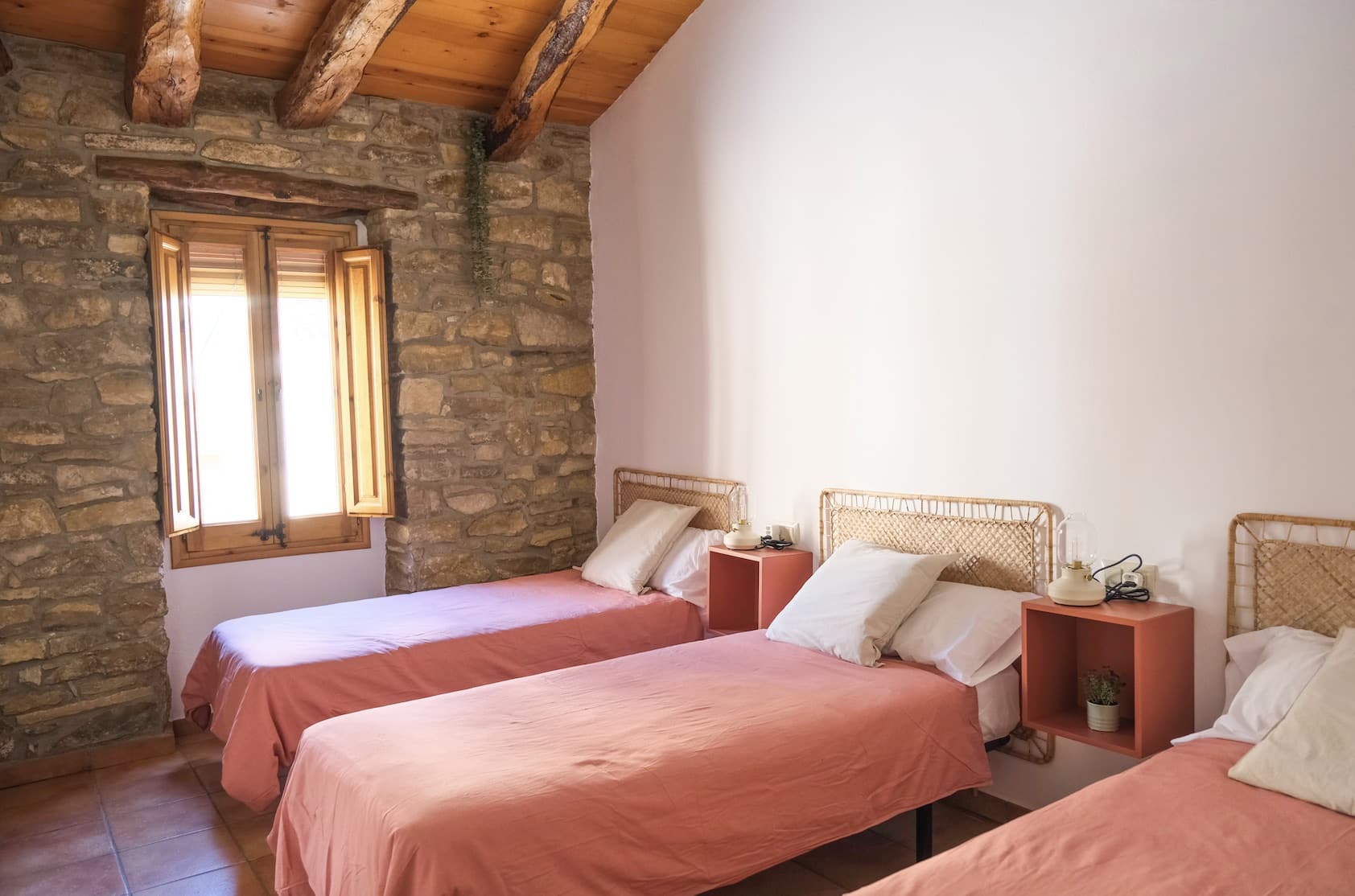 Construida hace más de 100 años, Cal Caminer conserva todo el carácter de una casa de pueblo: paredes de piedra, un original envigado de troncos, que conviven en harmonia con las comodidades actuales, lo que confiere a todas sus estáncias una atmosfera cálida y muy personal que invita a desconectar y disfrutar de su estància.