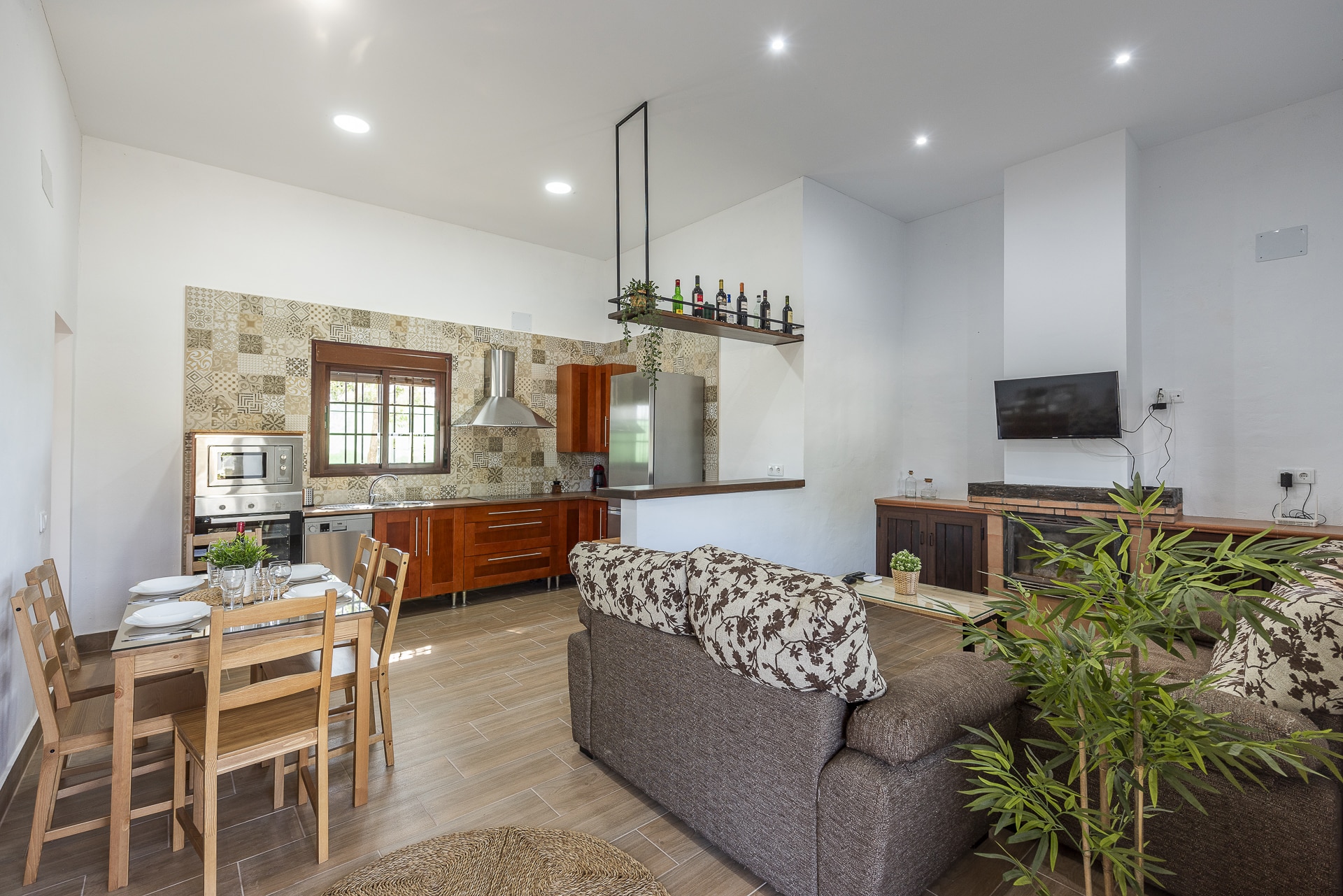 Salón Comedor con chimenea, A.A, TV con satélite, Wifi.