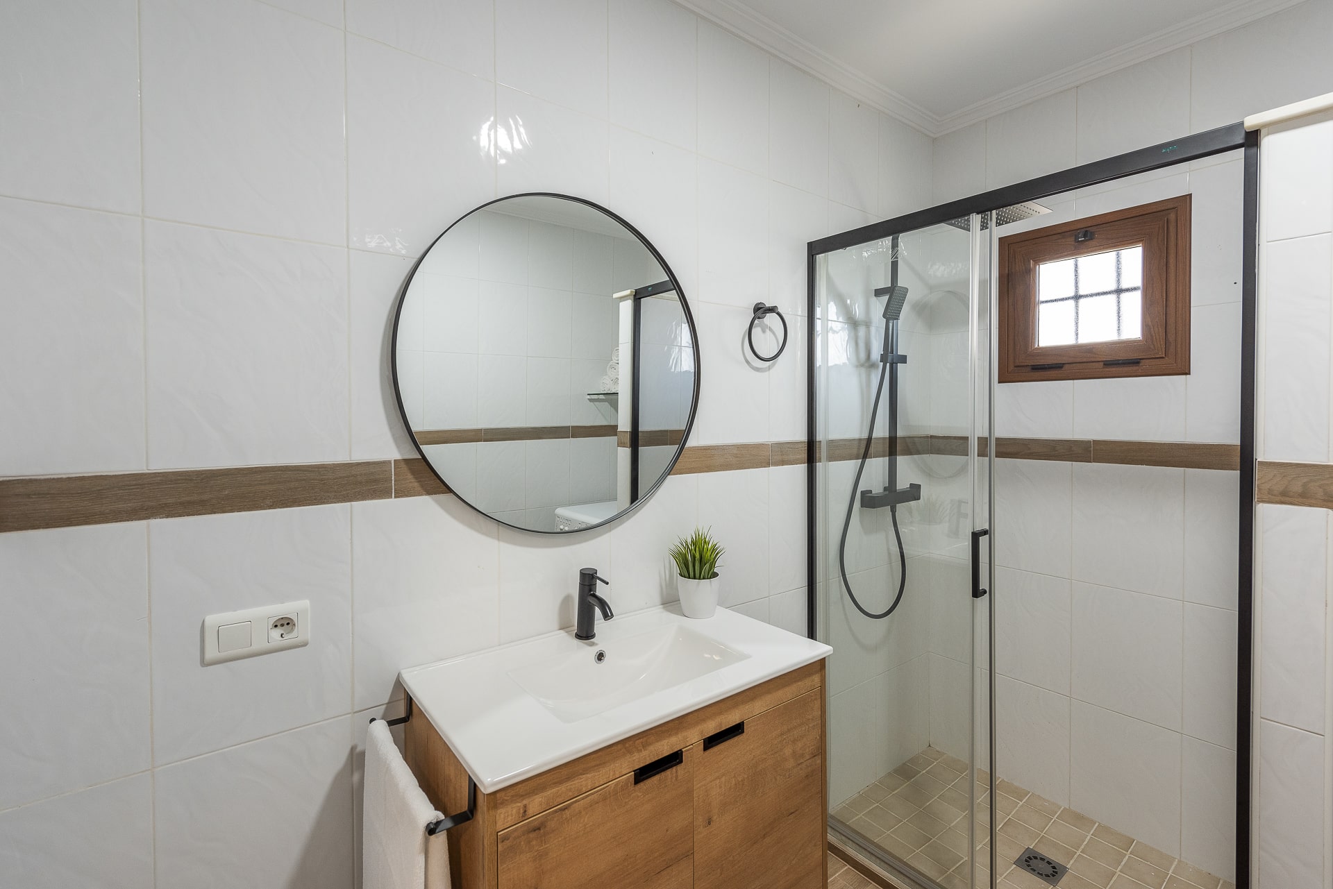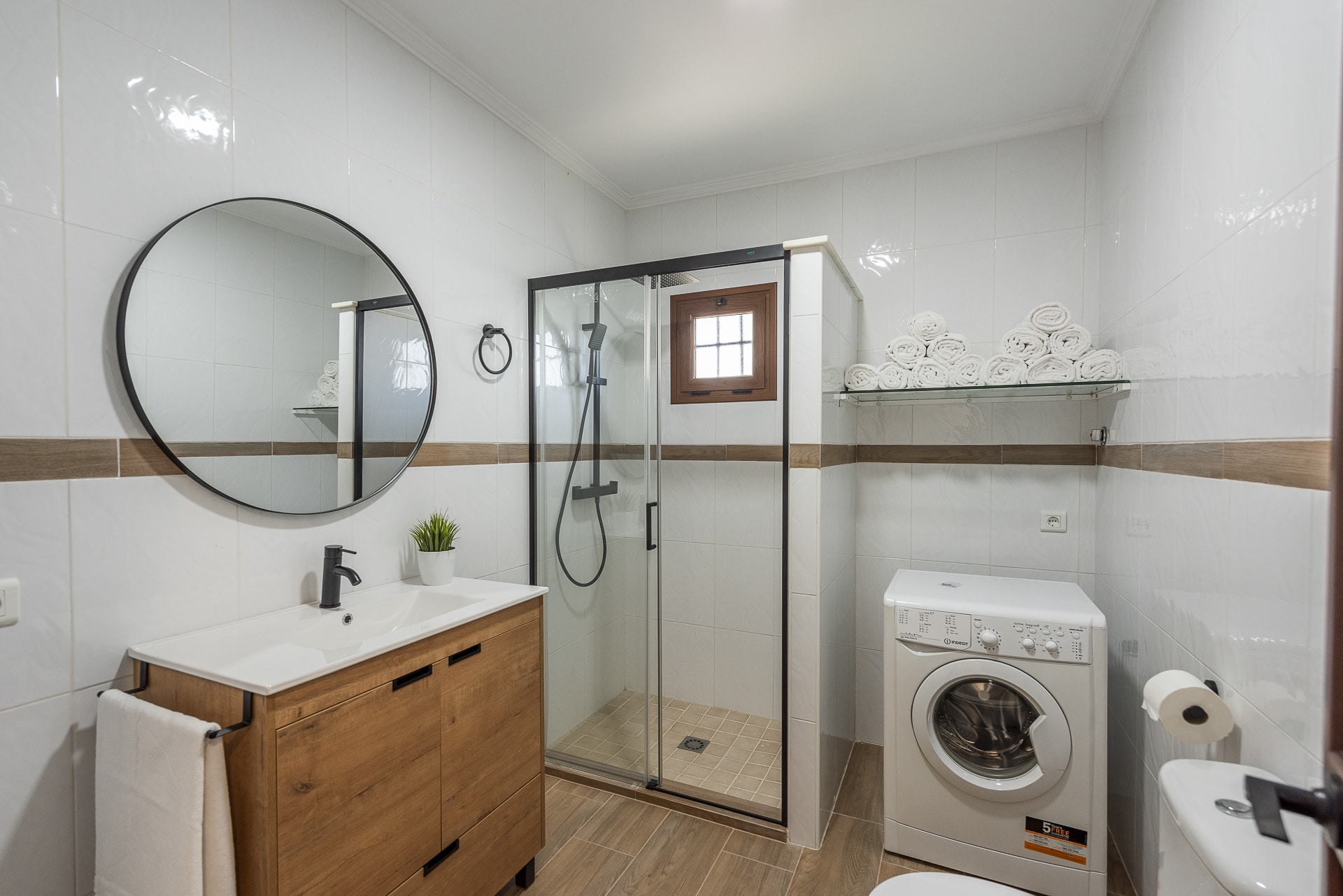 1 cuarto de baño con ducha y lavadora.