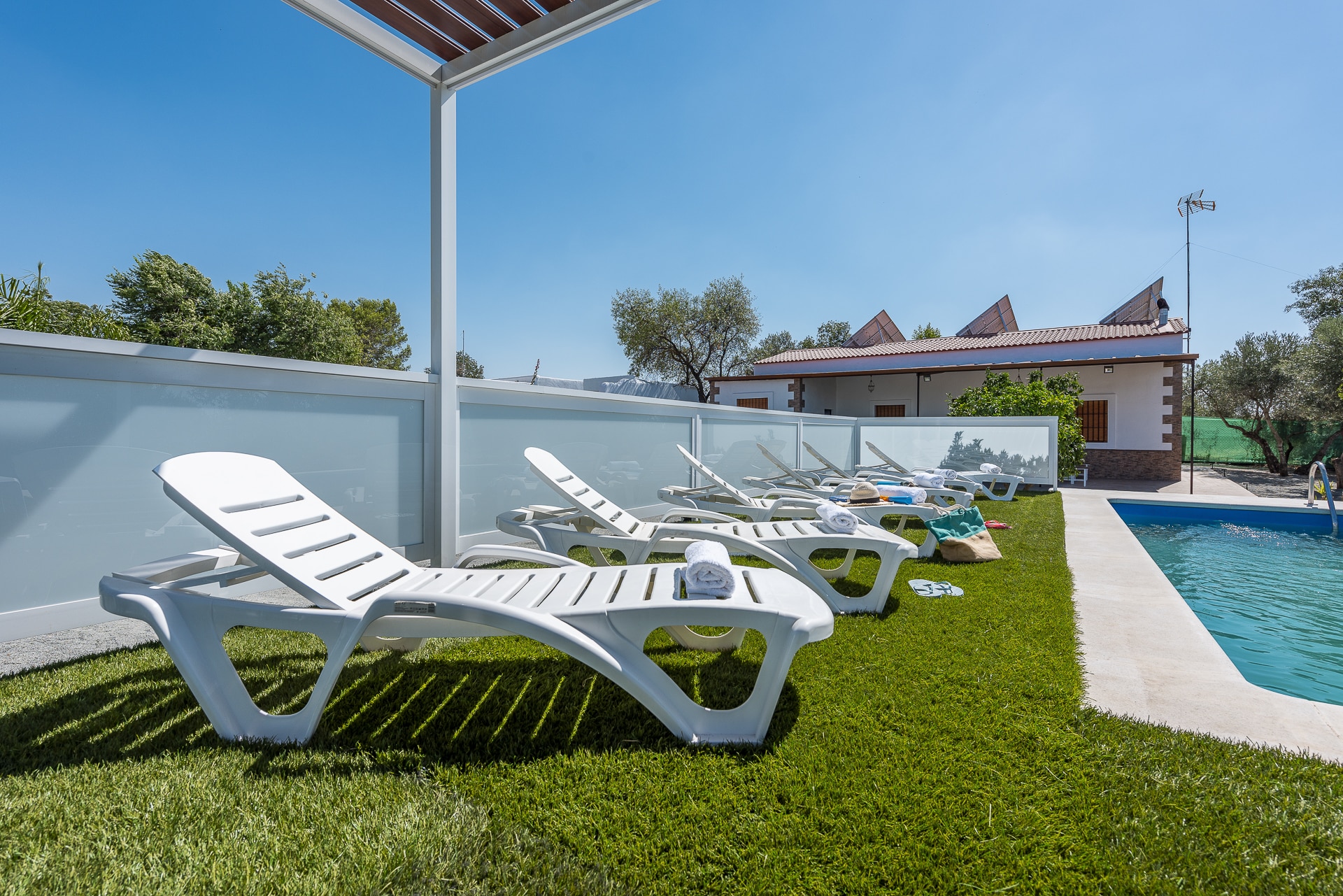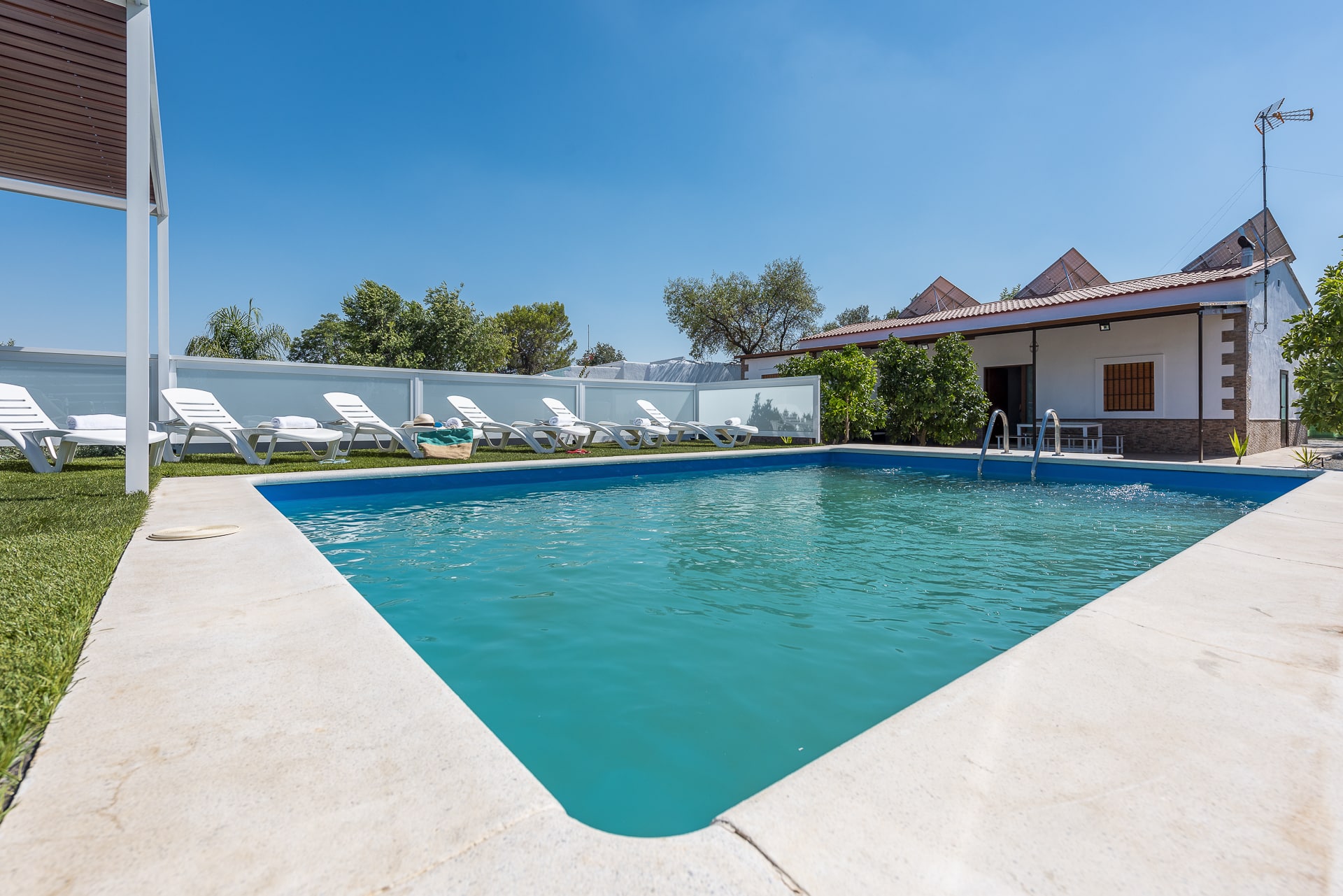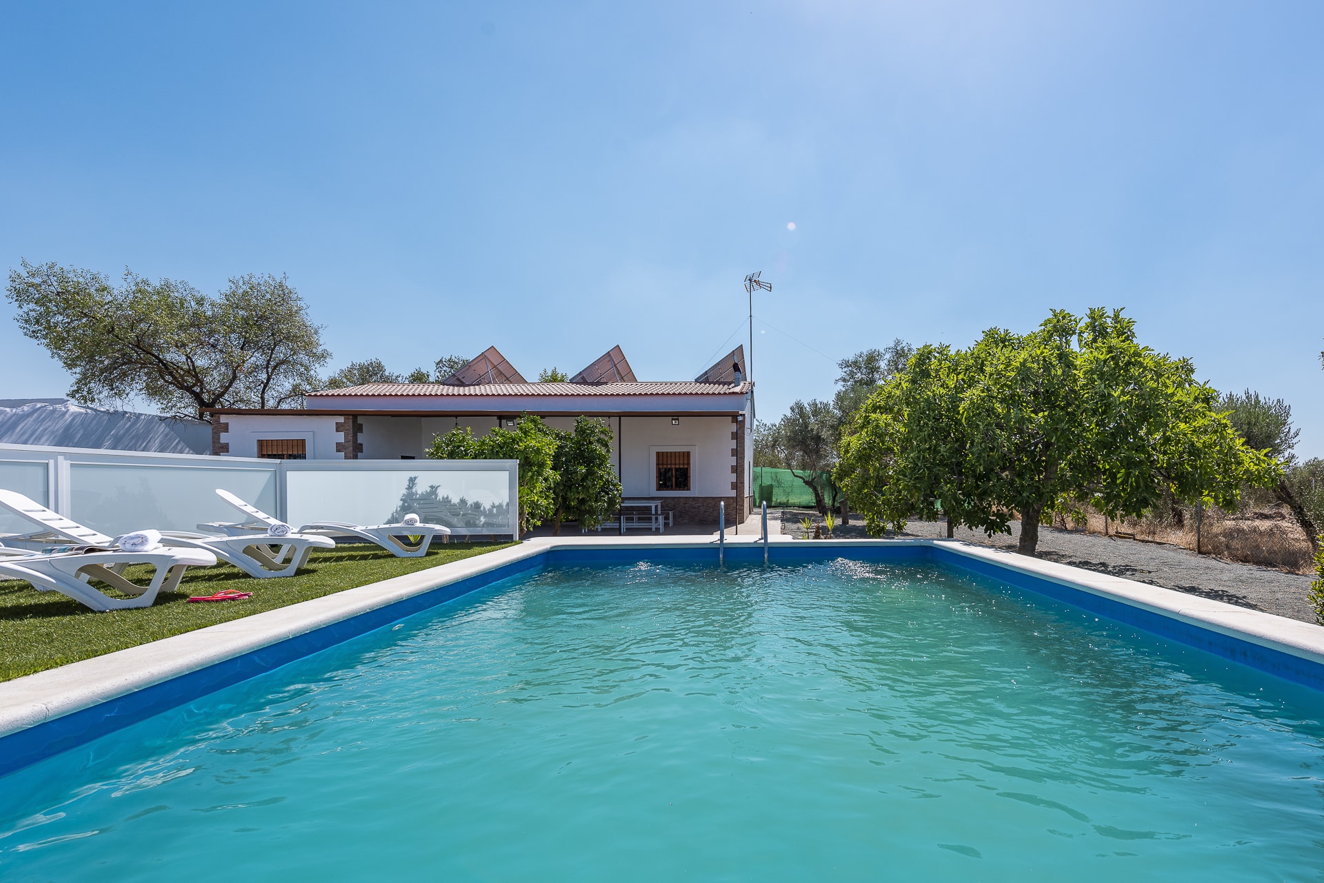 En un amplio terreno de 2500 m. con zona ajardinada, parking cubierto,… Ideal para visitar la región, cercana a autovía A-92 Sevilla-Granada.