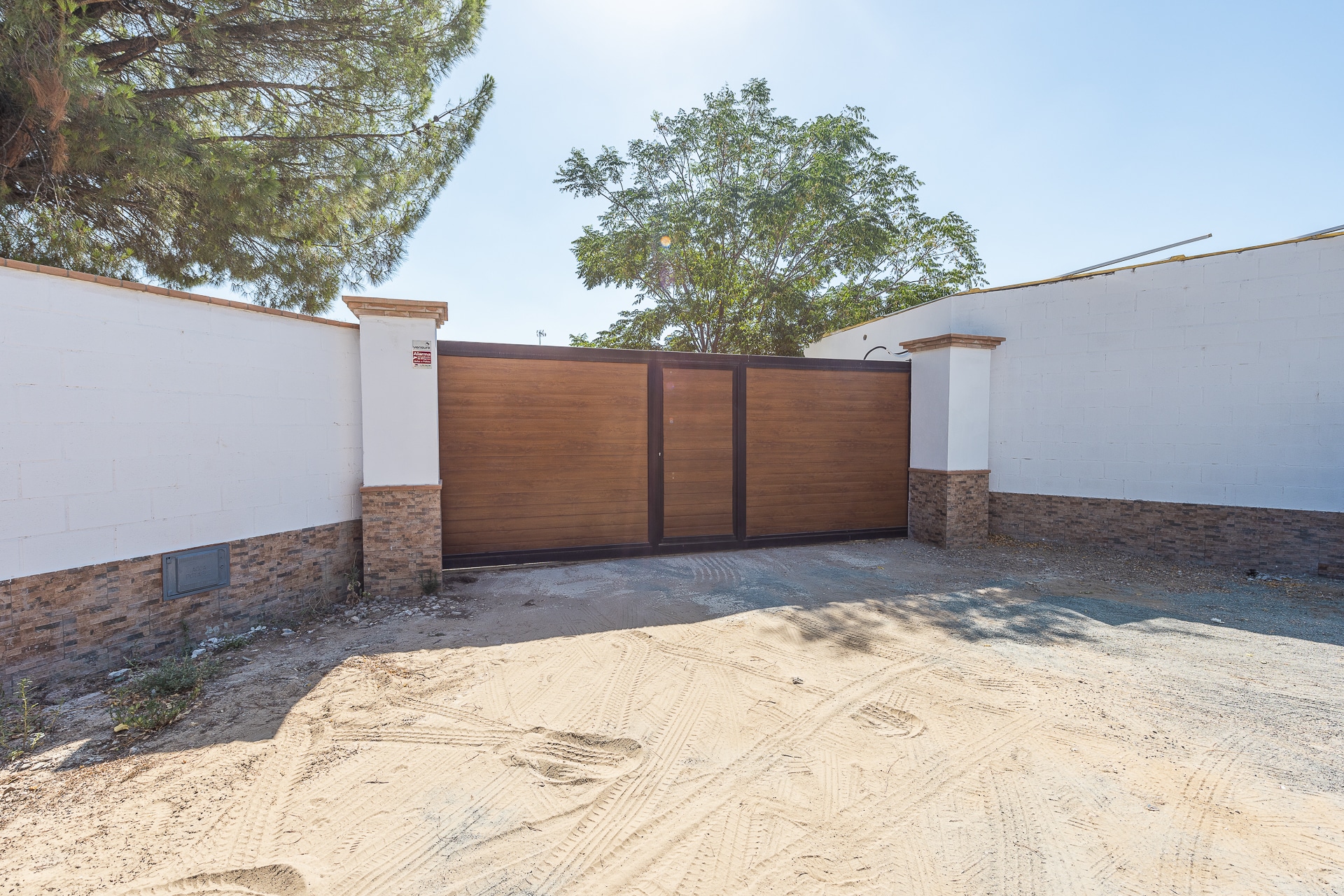 Entrada a la parcela con puerta automática.