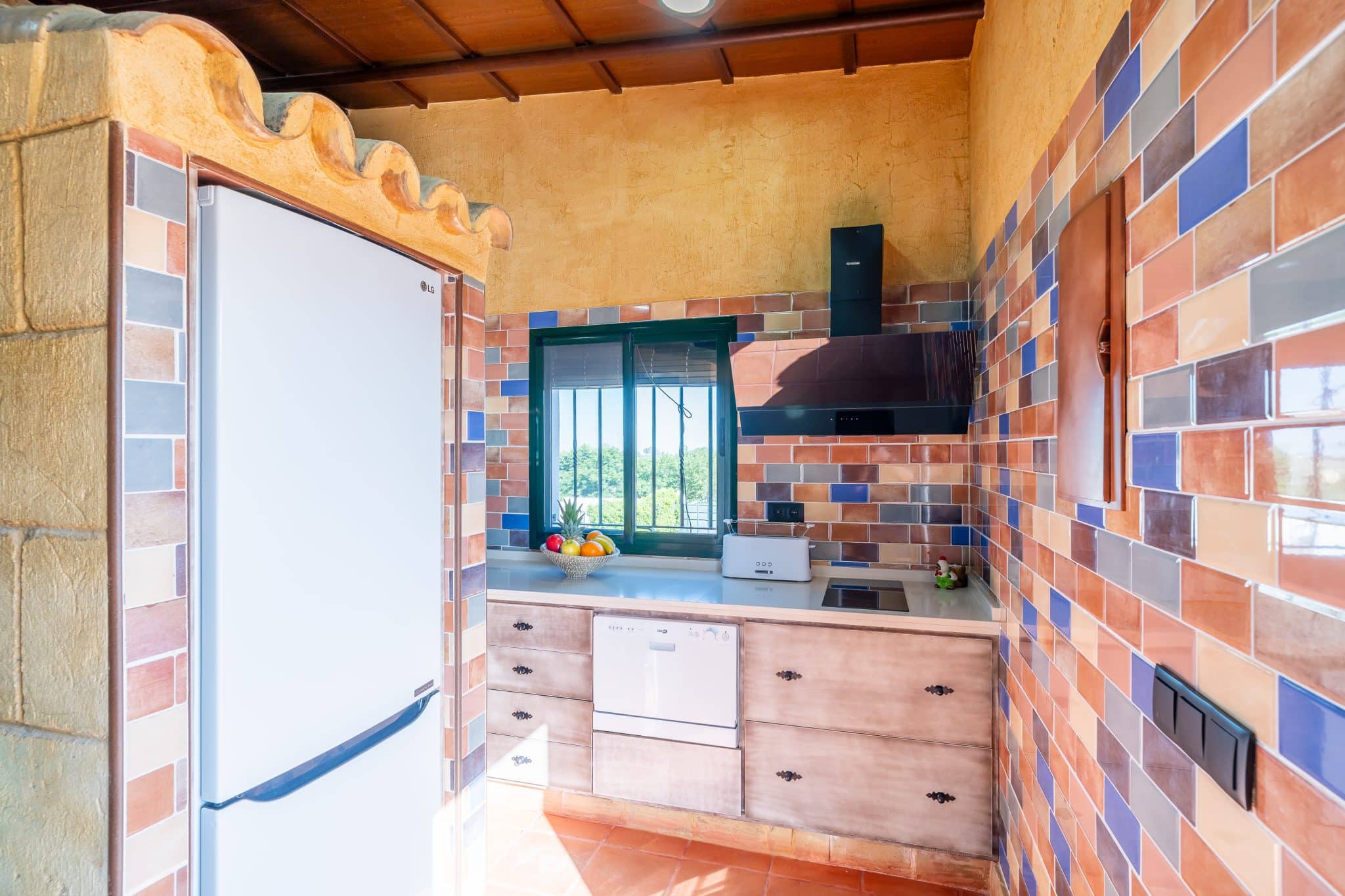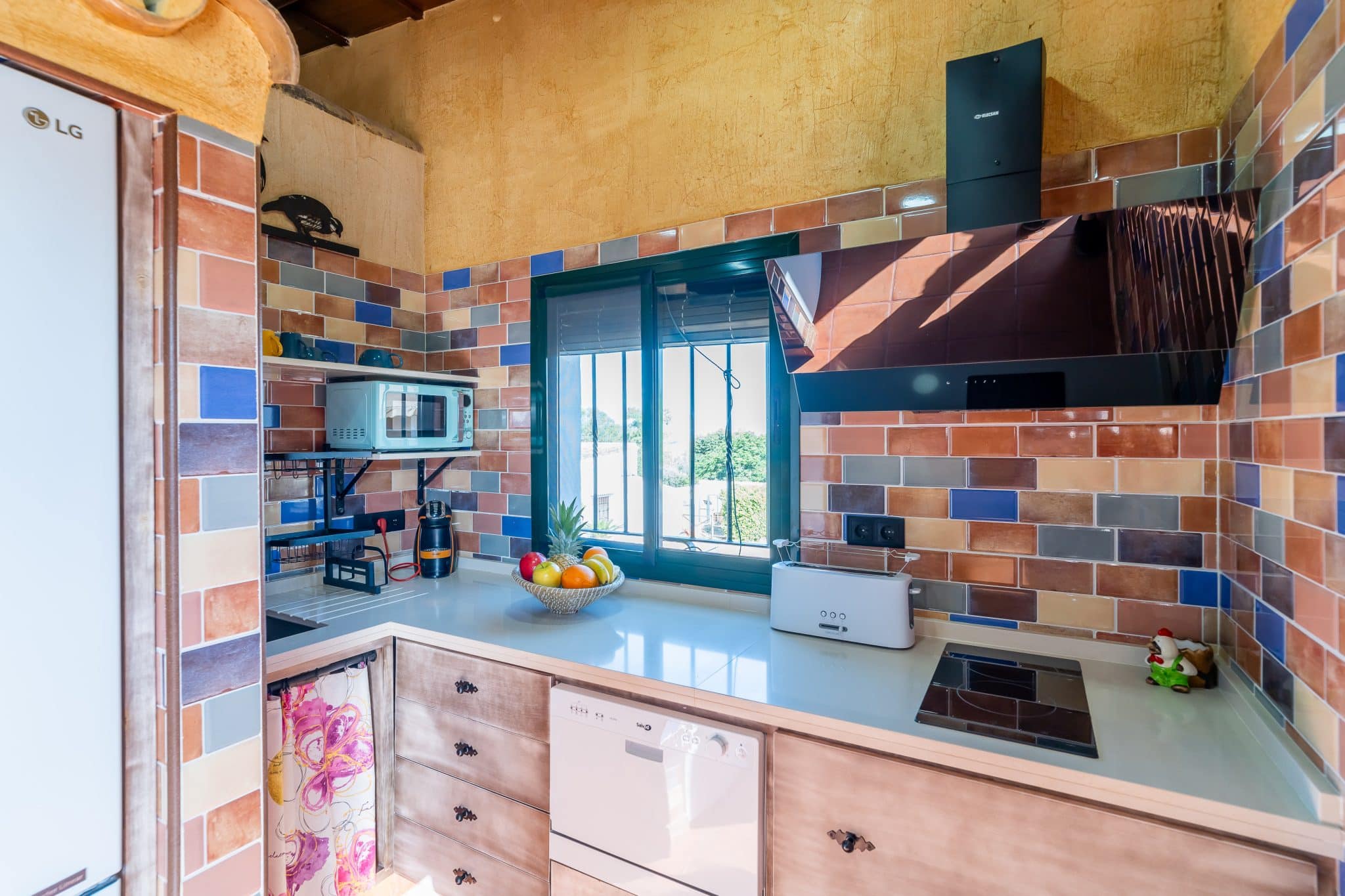 Caseta junto casa con barra bar, nevera, plancha bar, barra bar.