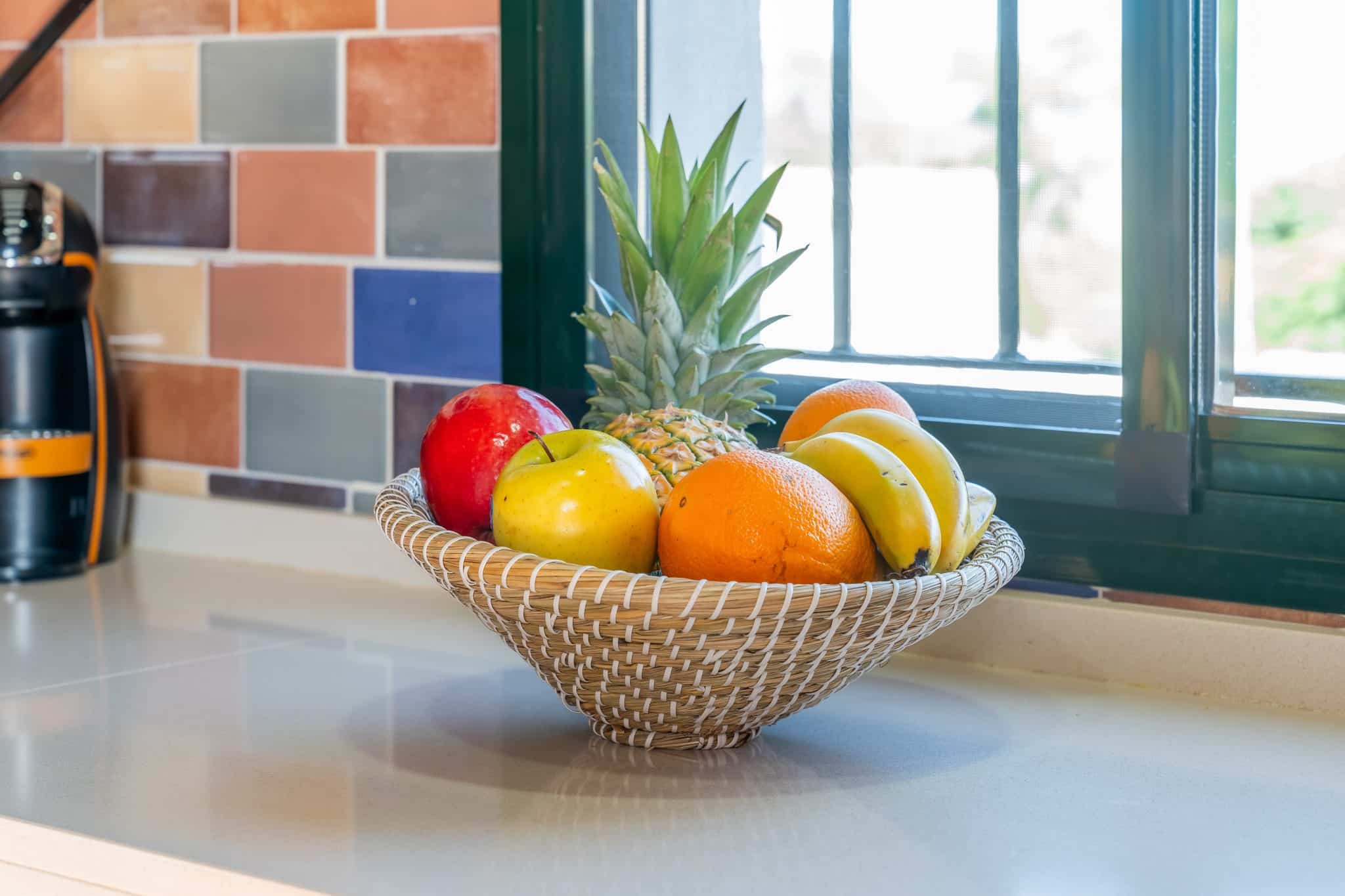 Cocina abierta al salón con placa vitrocerámica de 2 fuegos, microondas, frigorífico, lavavajillas, cafetera cápsulas,…