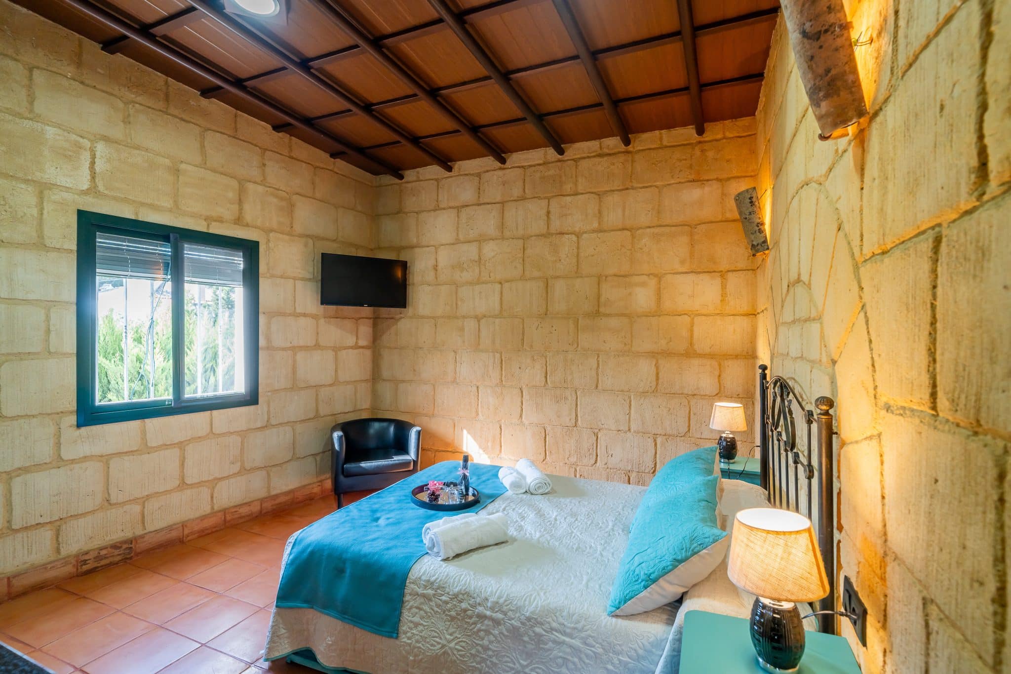 Casa rural con gran piscina privada. Hasta 4 personas en 2 habitaciones. Porches con barras bar.