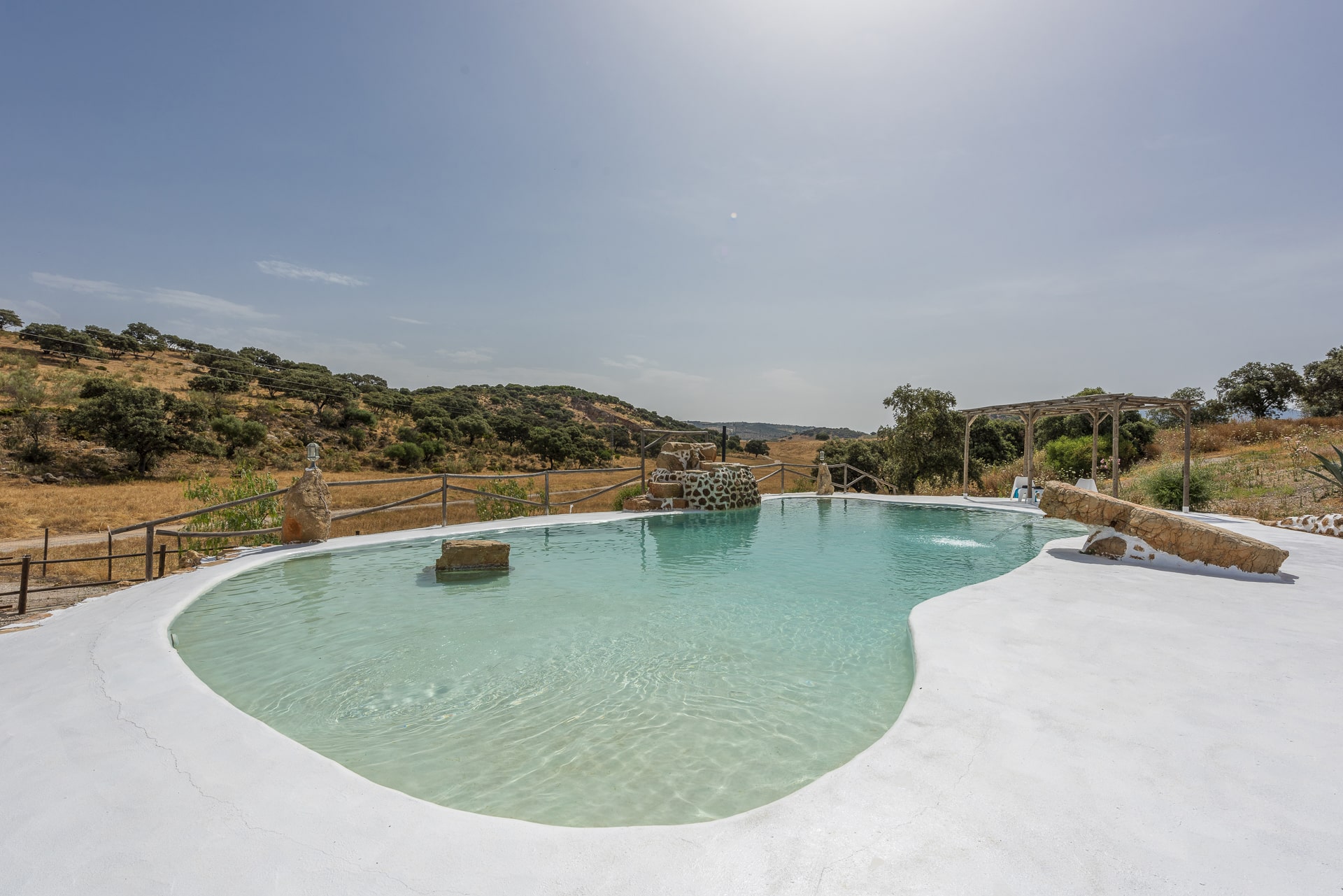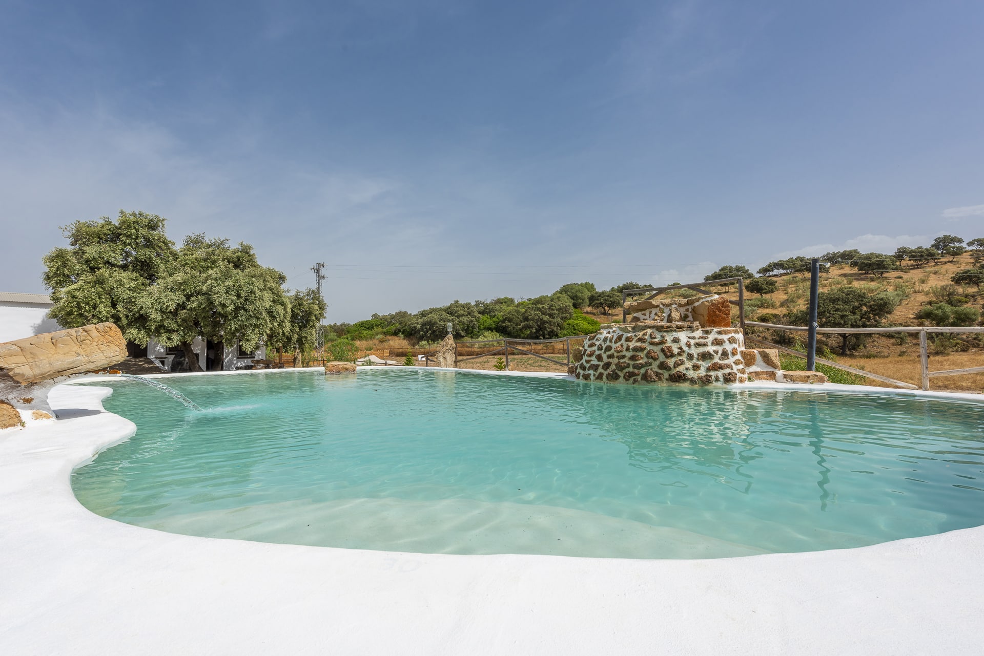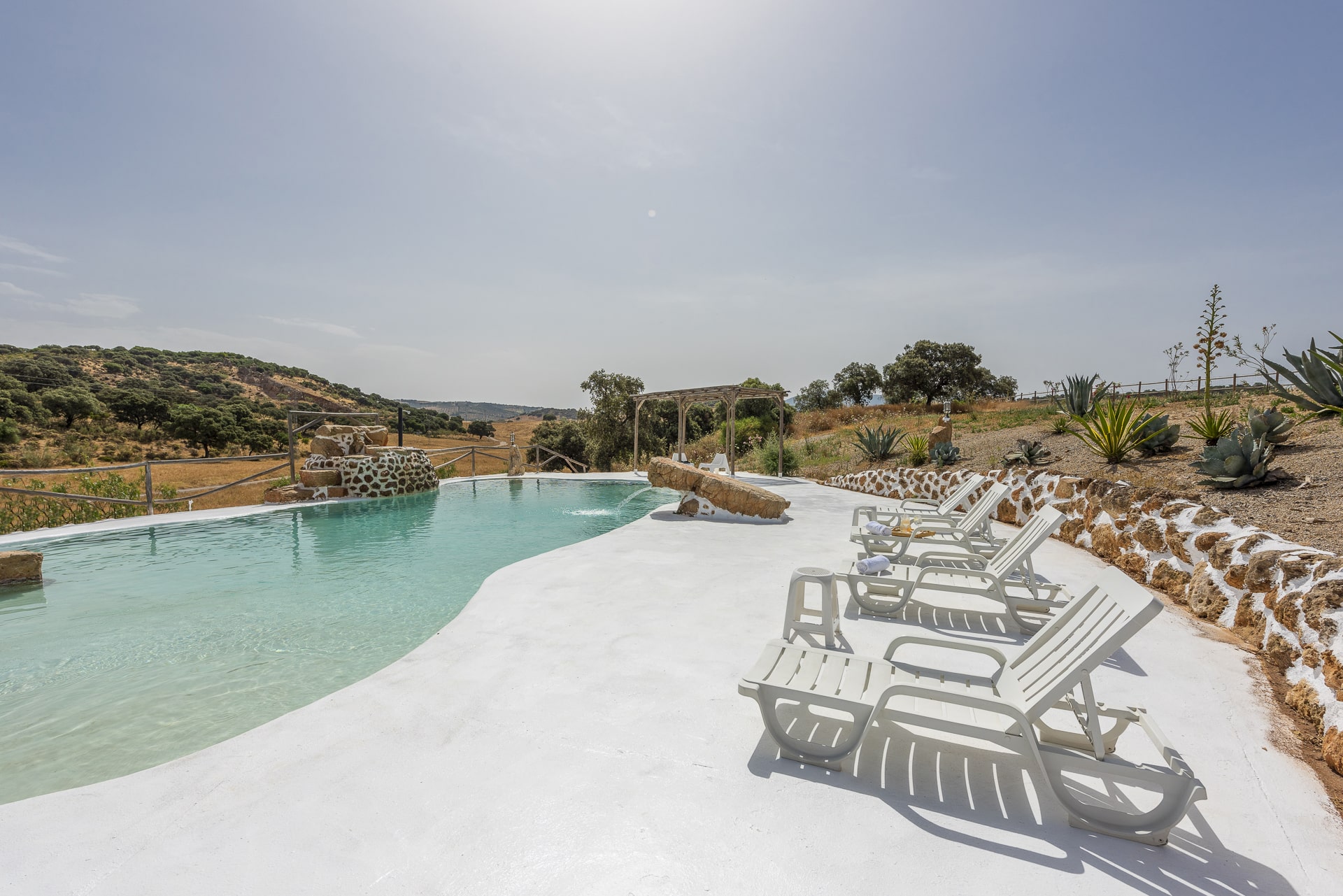 En Casa El Ventorrillo destaca su espectacular gran piscina rústica rodeada del bello paisaje de la Sierra Sur de Sevilla.