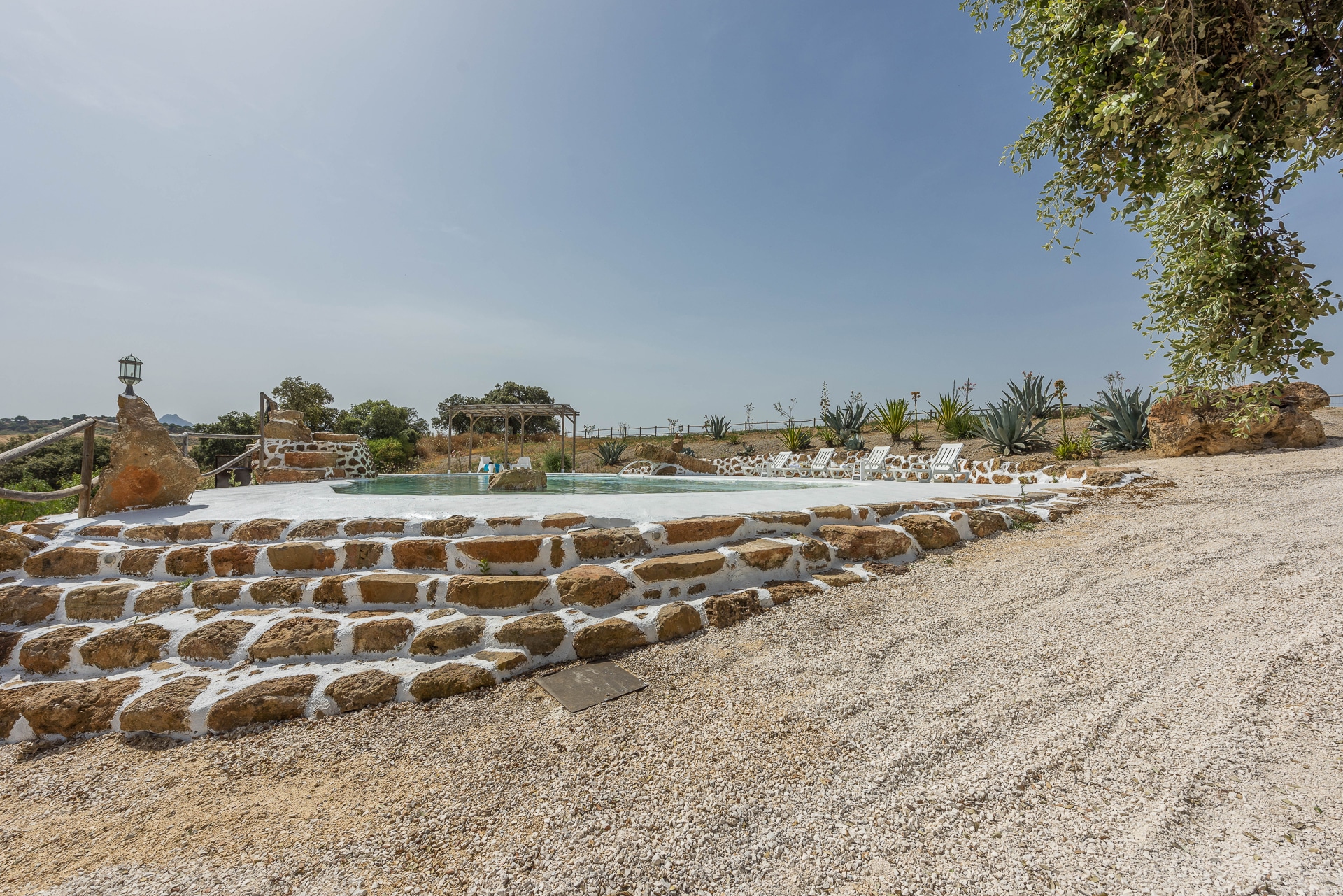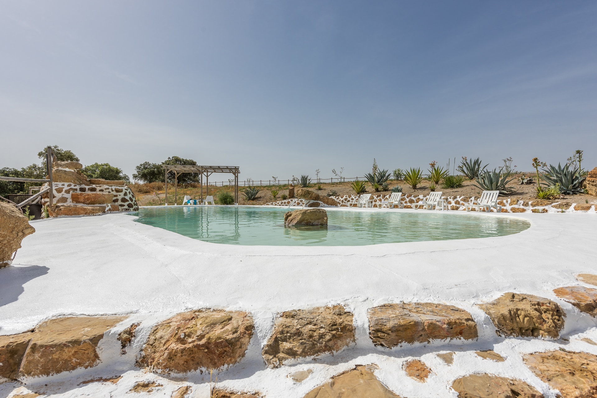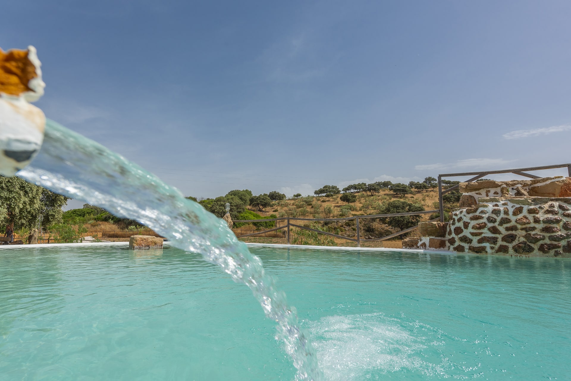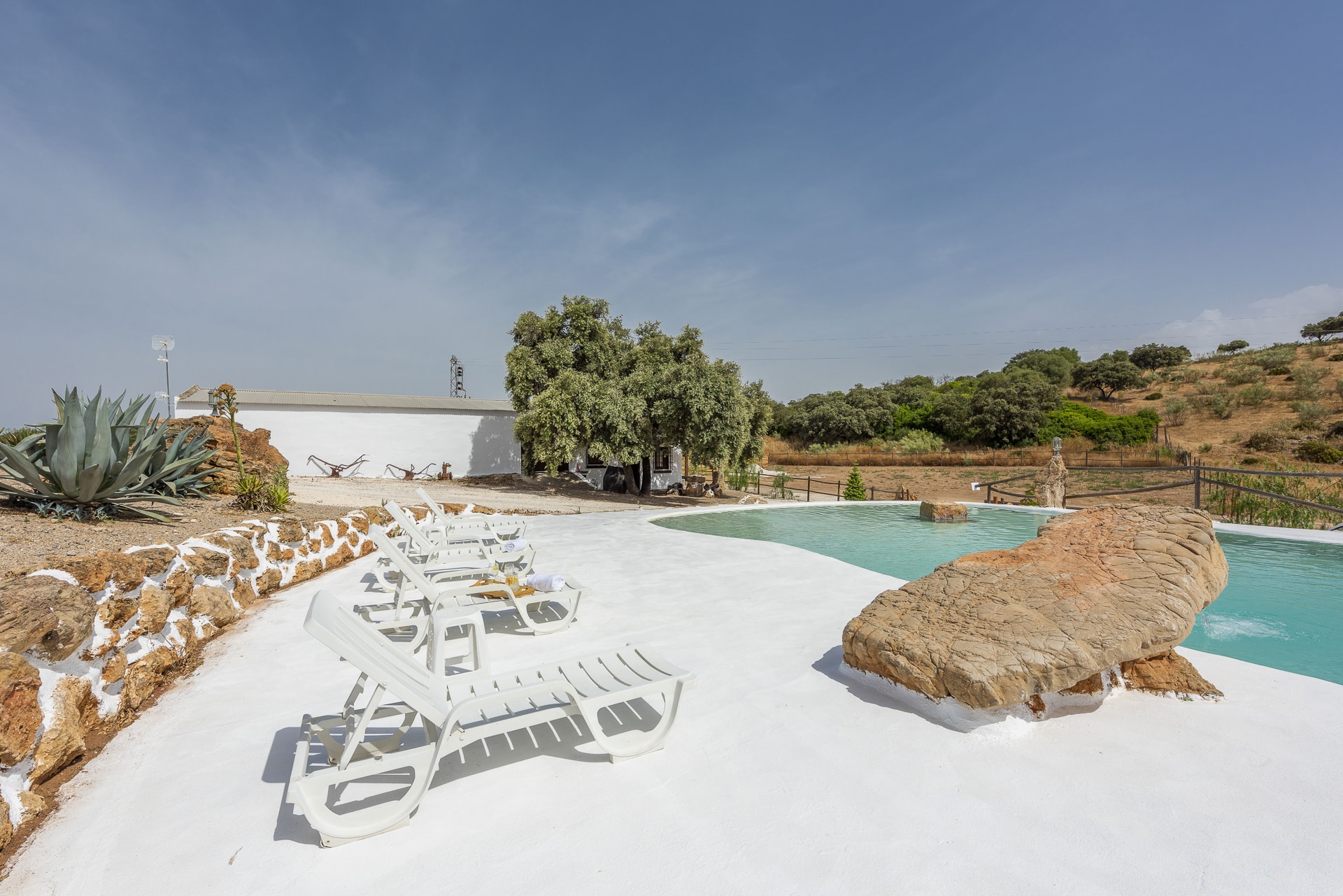 En Casa El Ventorrillo destaca su espectacular gran piscina rústica rodeada del bello paisaje de la Sierra Sur de Sevilla.