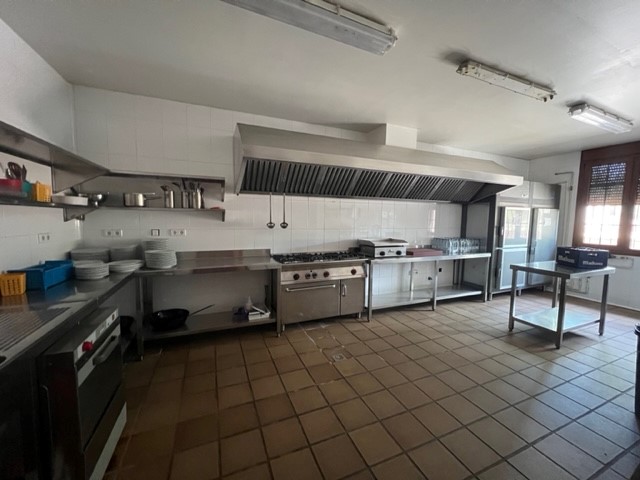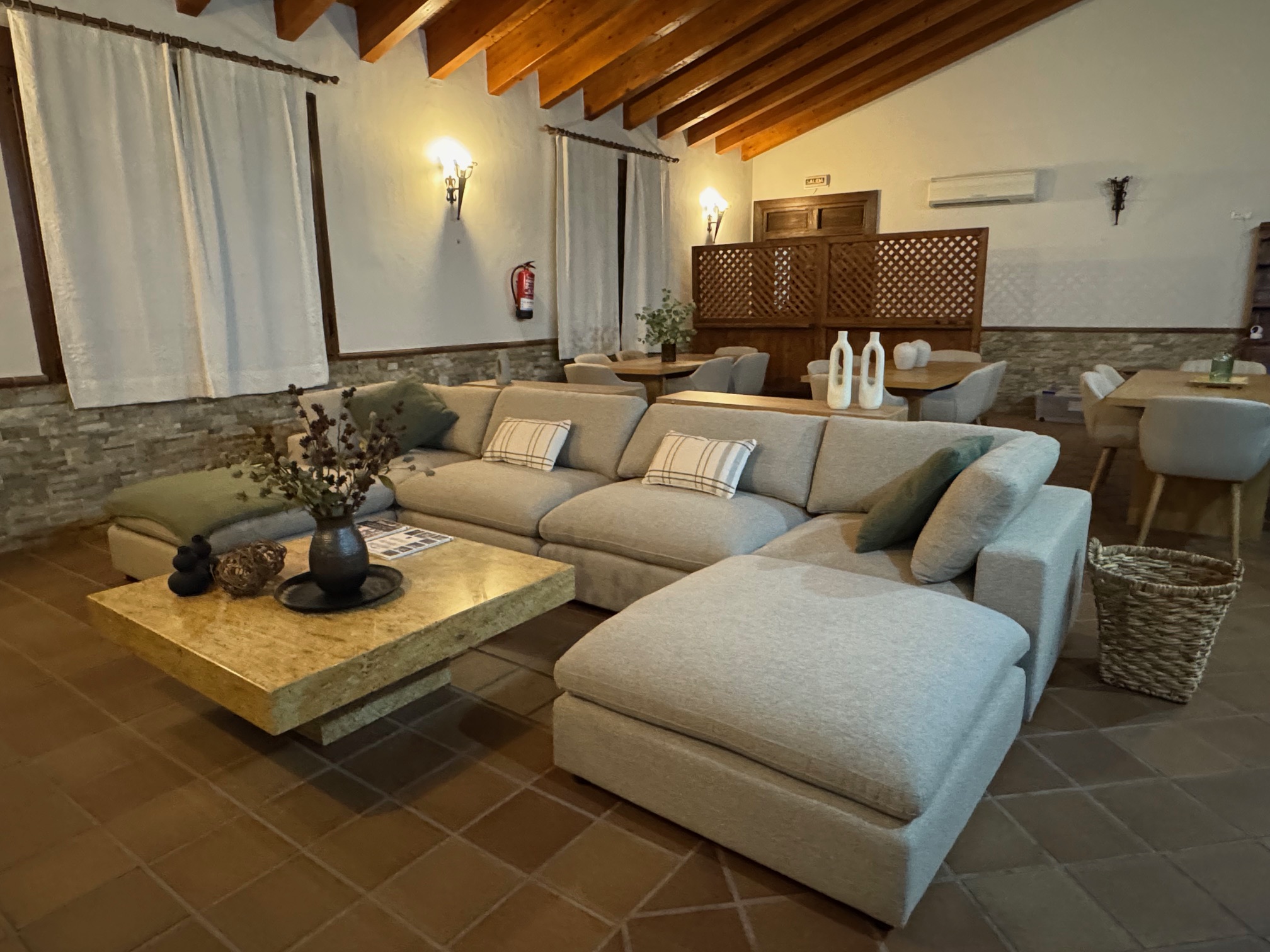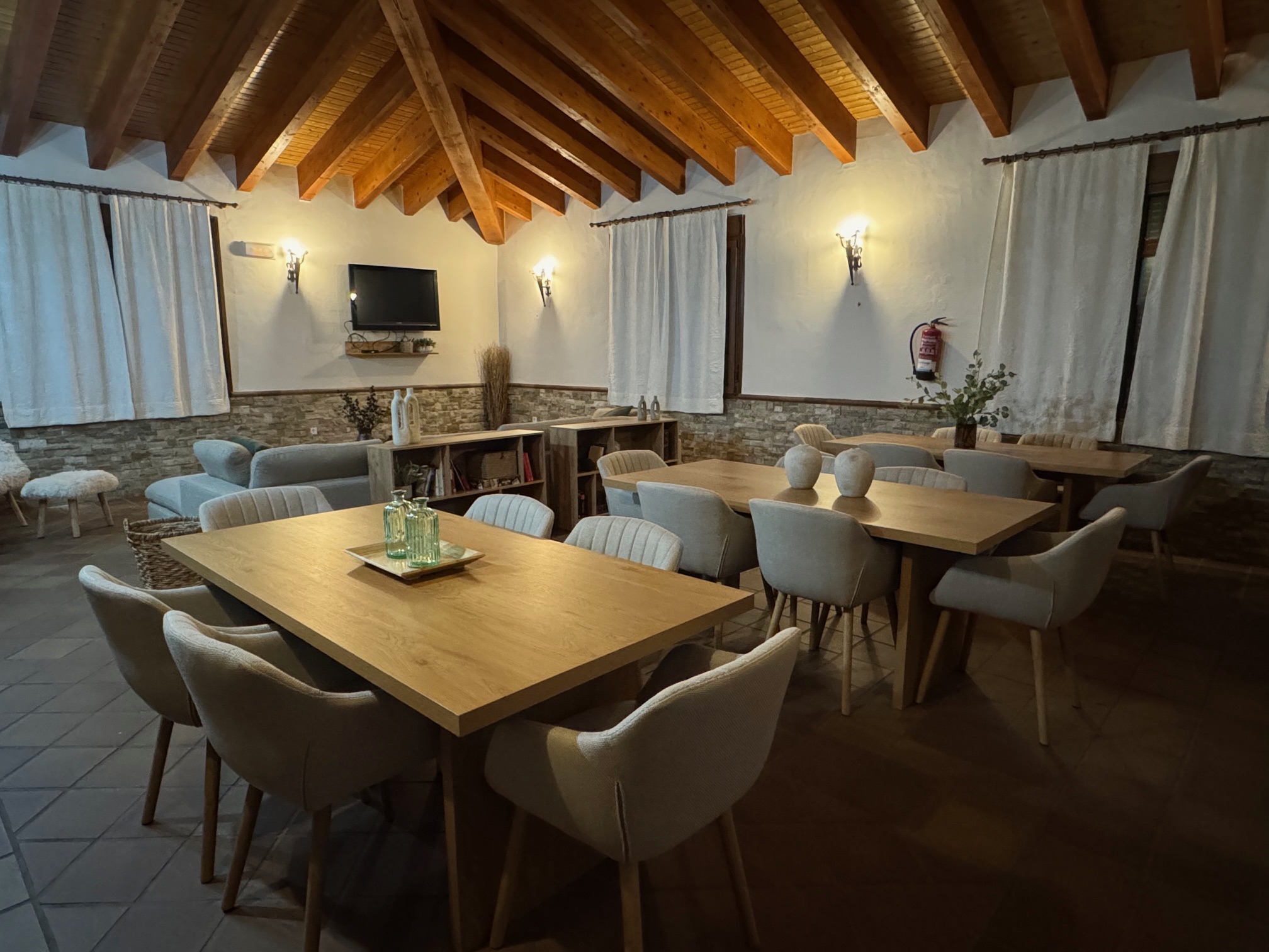 Uno de los espacios más destacados del alojamiento es su amplio salón-comedor de aproximadamente 80 metros cuadrados, ideal para reuniones familiares, celebraciones tranquilas o encuentros entre amigos. Este espacio se complementa con una cocina industrial totalmente equipada, pensada para cubrir las necesidades de estancias largas o grupos grandes.
