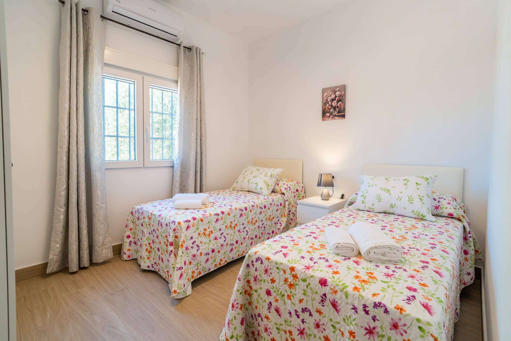 2 habitaciones con aire acondicionado, ventilador techo y armarios. 4 personas.