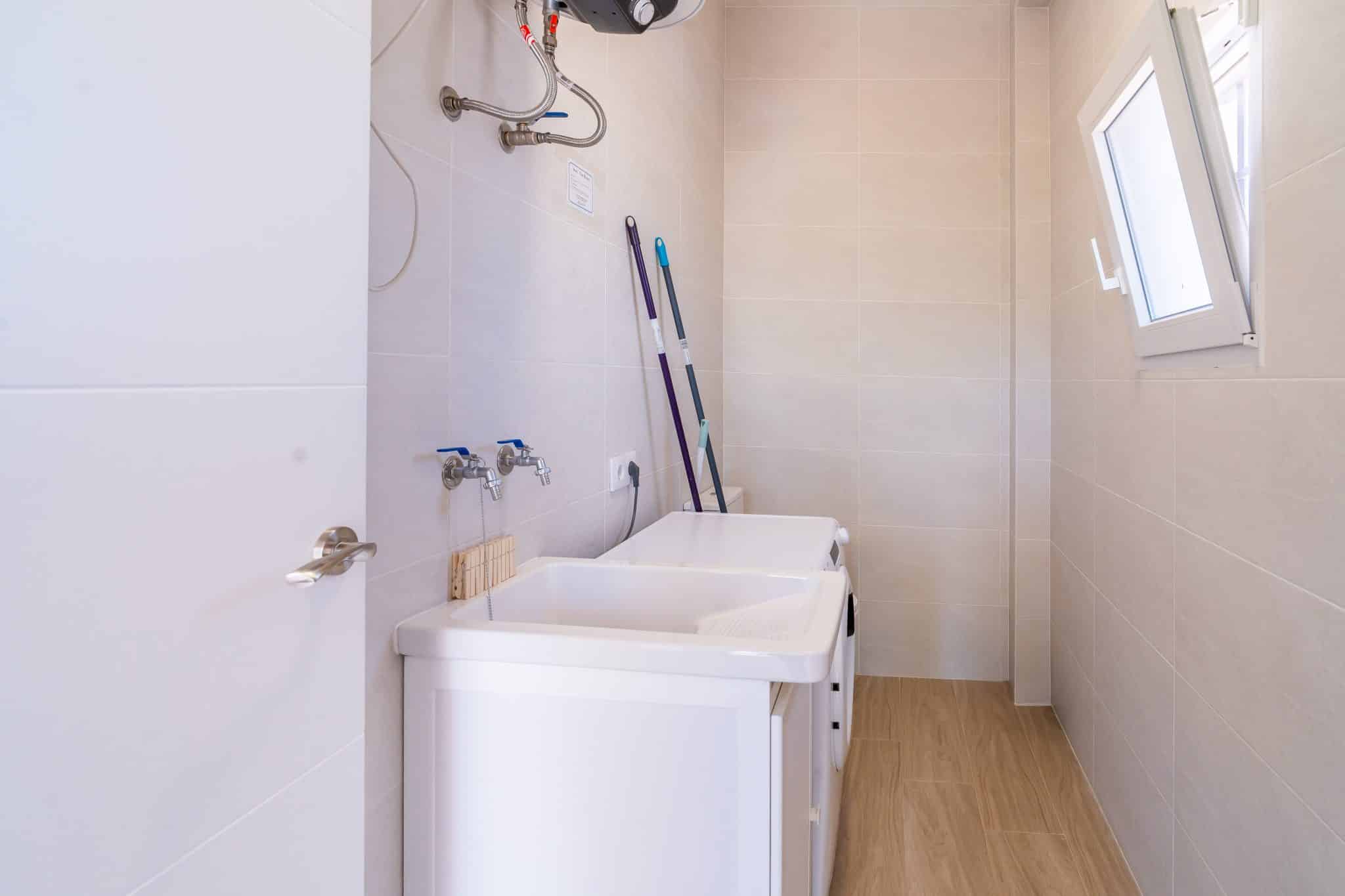 Cuarto con lavadero, lavadora, aseo.