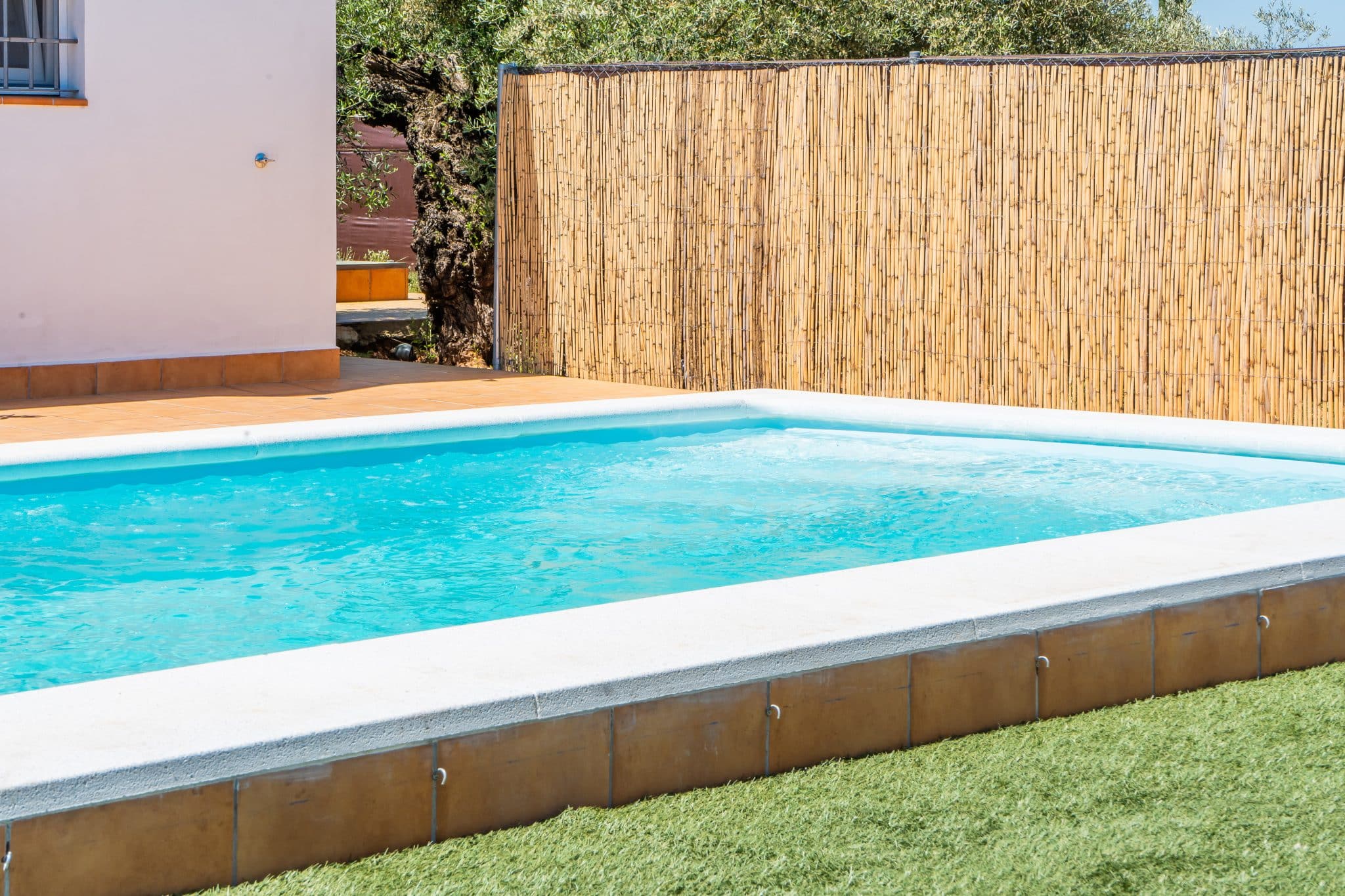 Piscina de 6 x 4 metros y profundidad 1,10 a 1,40 mts. entrada en escalera romana y asientos dentro de piscina.