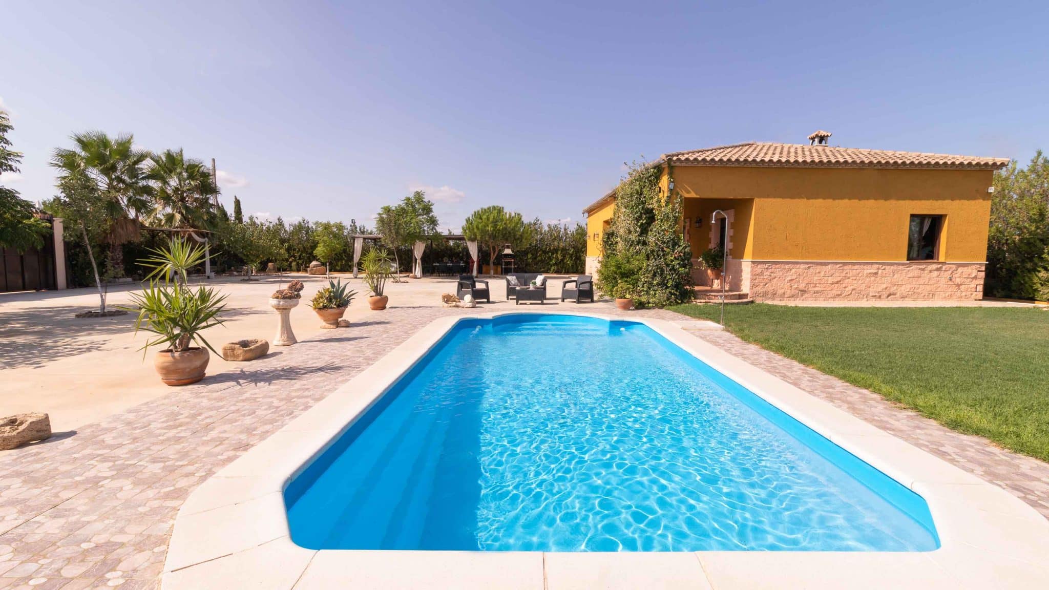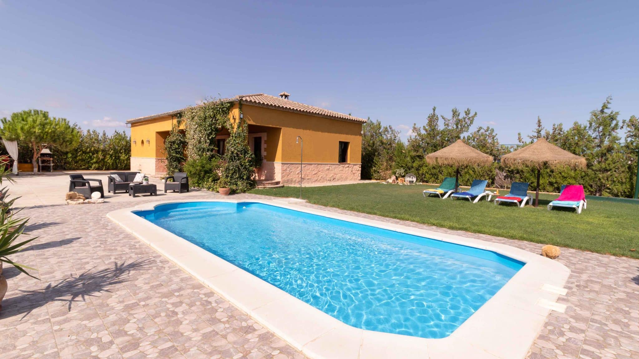 Villa con piscina situada en el típico pueblo de la Campiña Sevillana. Hasta 6 personas en 3 habitaciones, pérgola, césped y piscina, juego niños,…