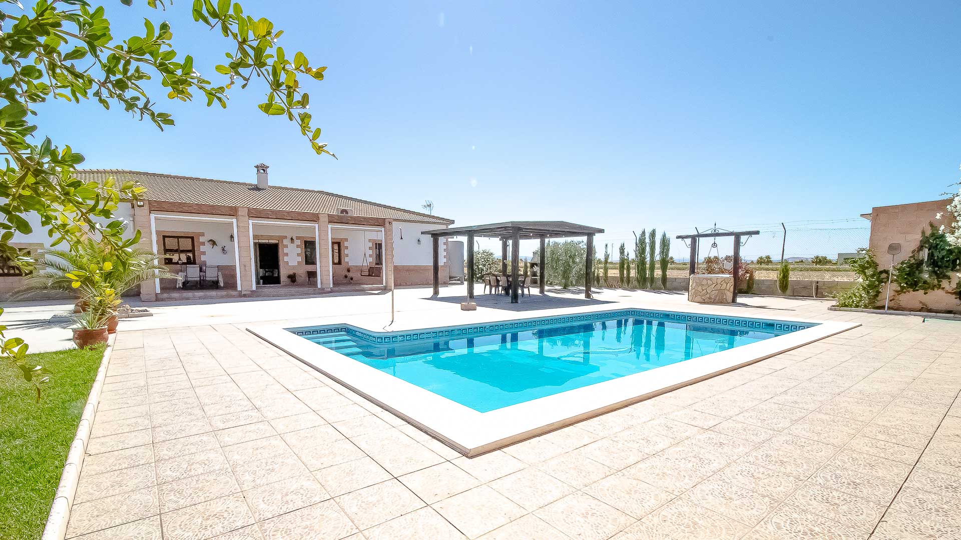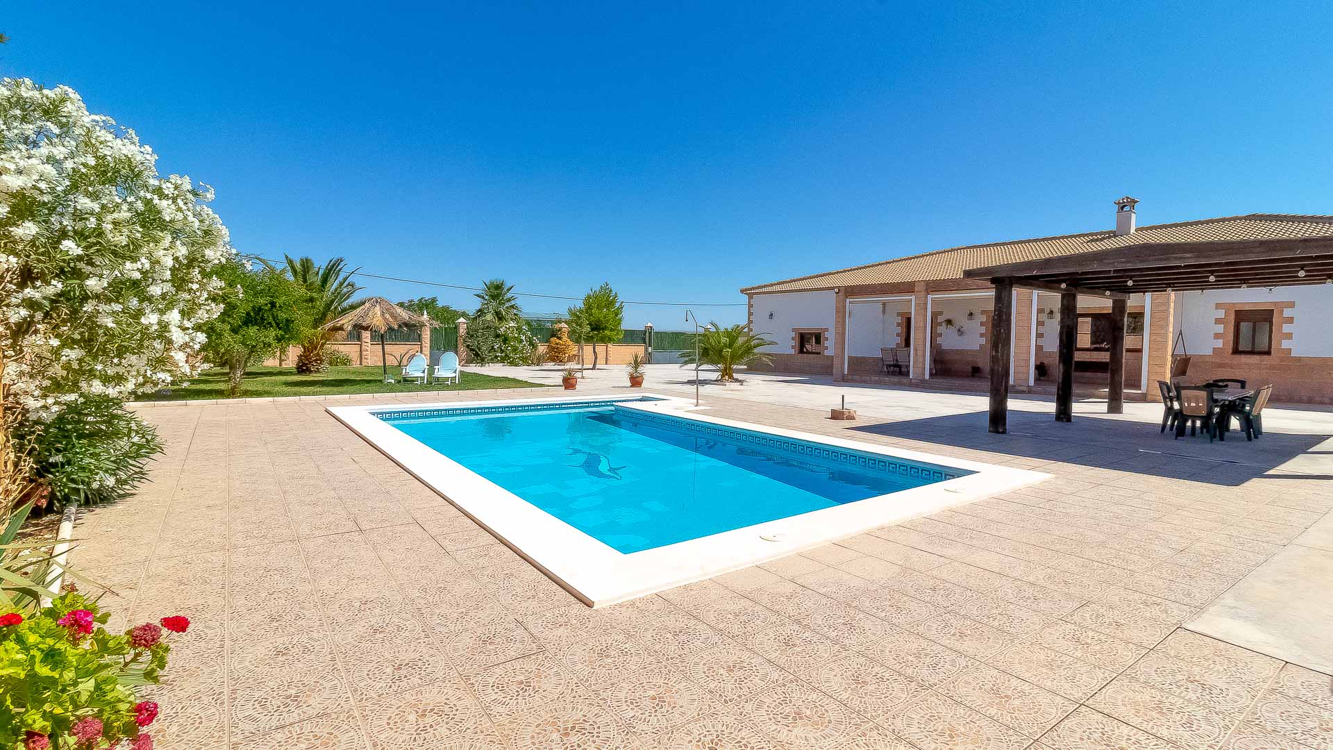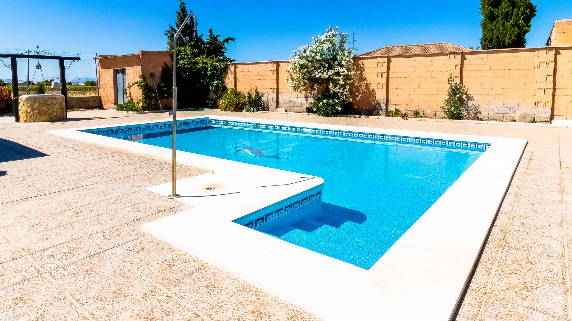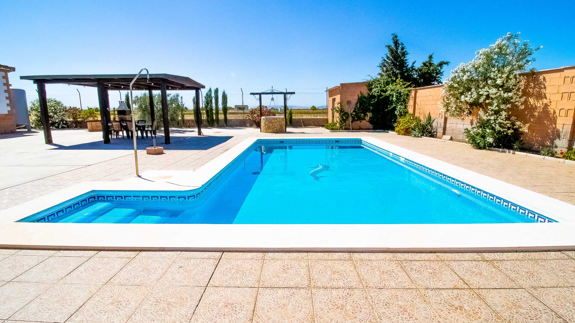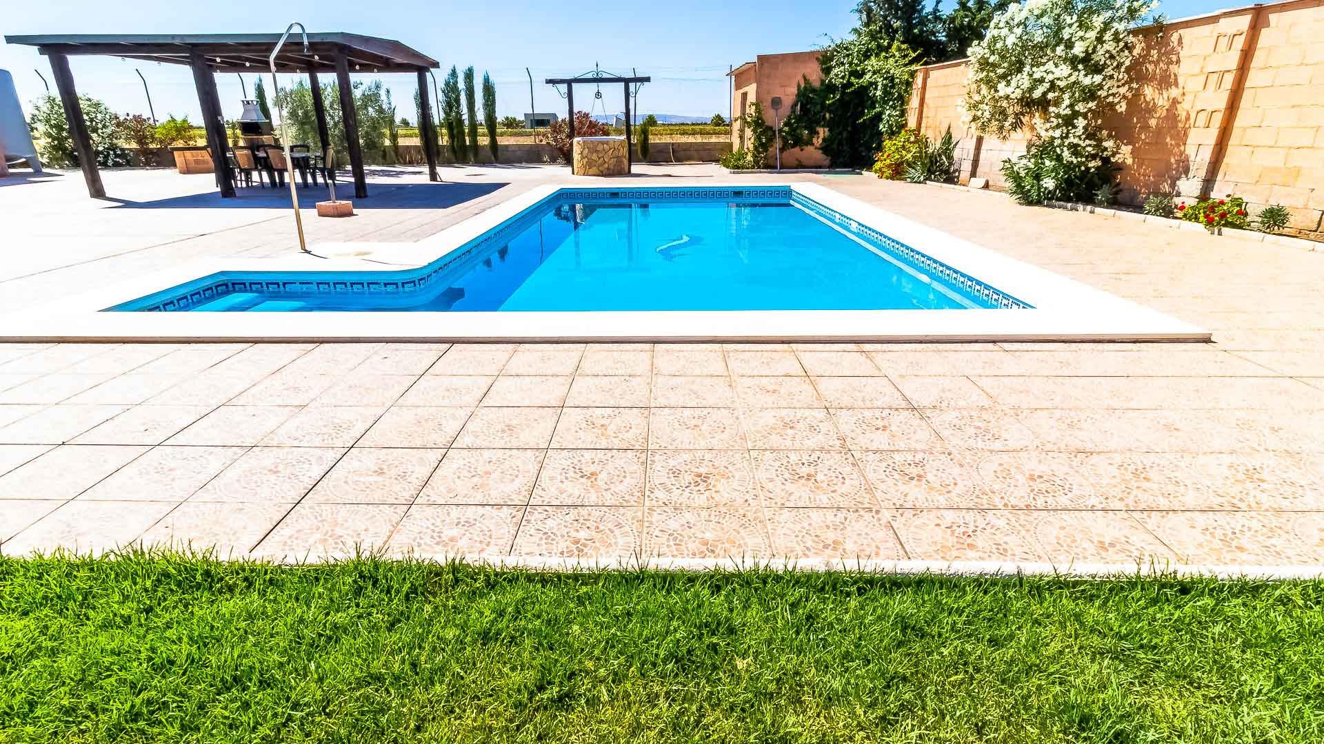 Gran piscina de 10 x 5 m. con escalera romana y 1.00 a 1.80 m. de profundidad