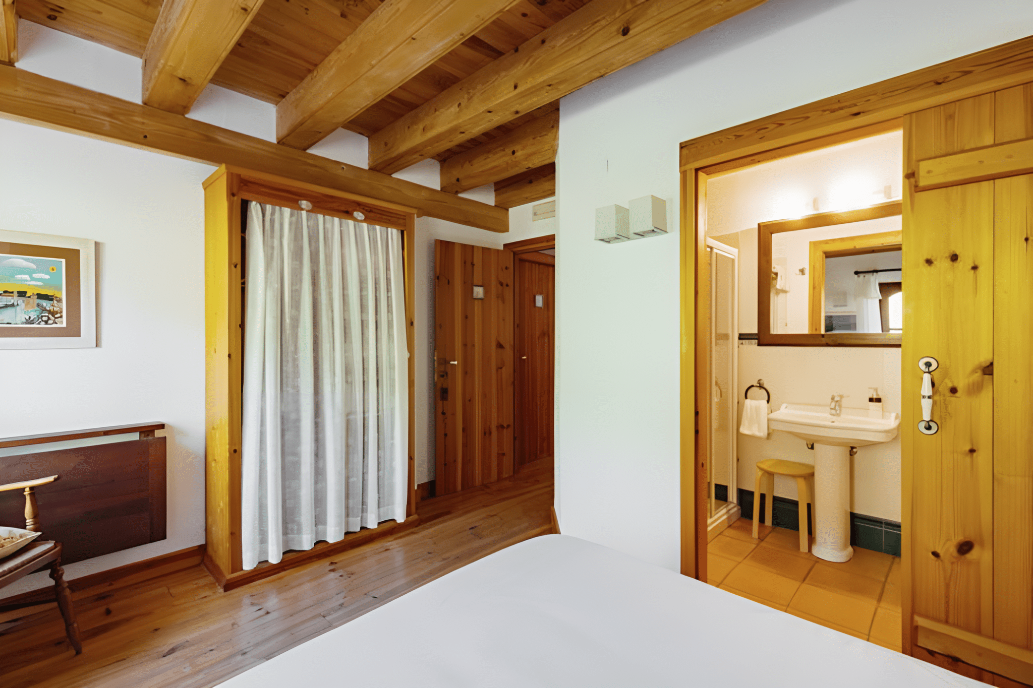 Es una habitación ideal para estancias cortas de 1 a 3 noches. Para estancias más largas os recomendamos mejor reservar Habitación Verano u Otoño, que son más grandes y con armarios más completos.