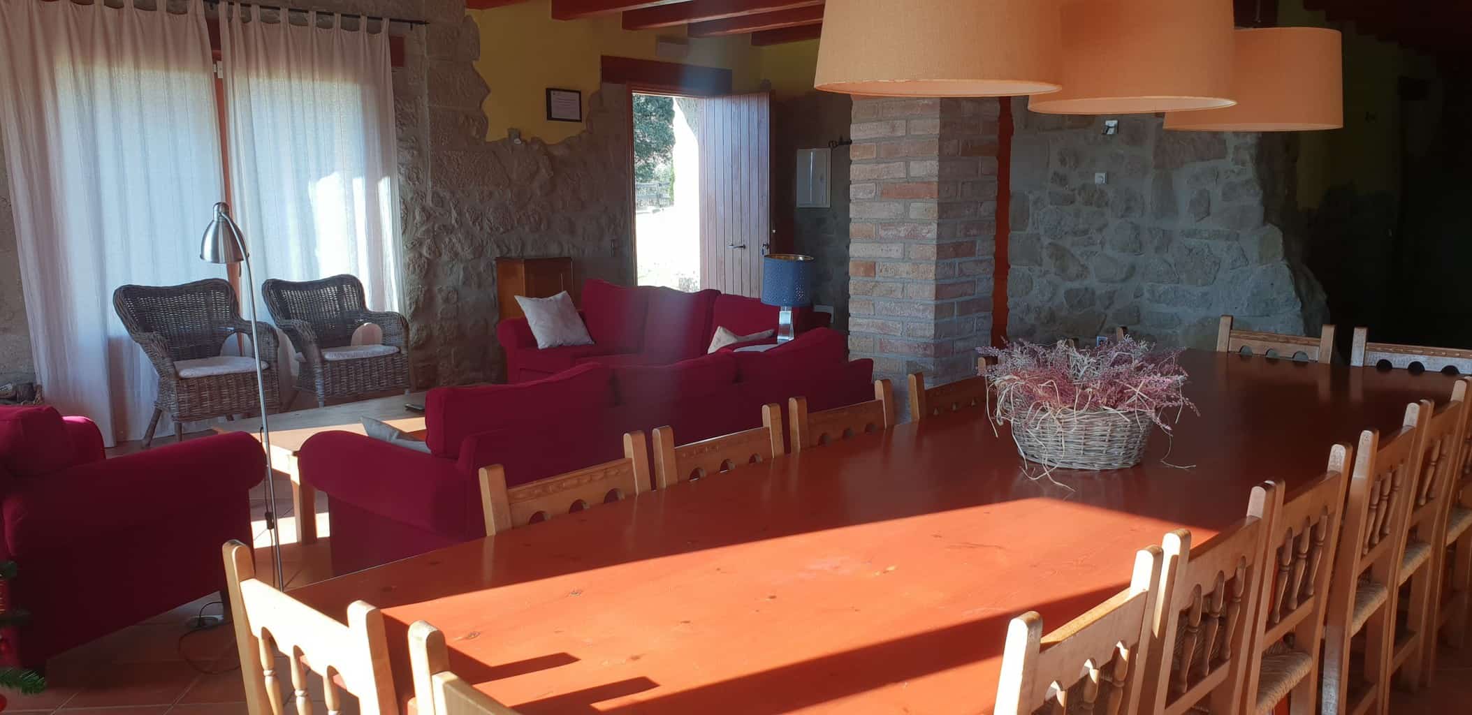 Casa rural con piscina interior climatizada, y piscina exterior con porche y barbacoa y baño privado en todas las habitaciones. Ubicada en las afueras del municipio de Gironella. Reformada el 2009 con todas las comodidades actuales, calefacción, vitroceramica, etc… Ideal para pasar unos días en familia o amigos, disfrutar de la tranquilidad del campo, el canto de los pajaros, caminar hasta el pueblo, seguir por la orilla del río Llobregat, y simplemente descansar y relajarse en la casa.